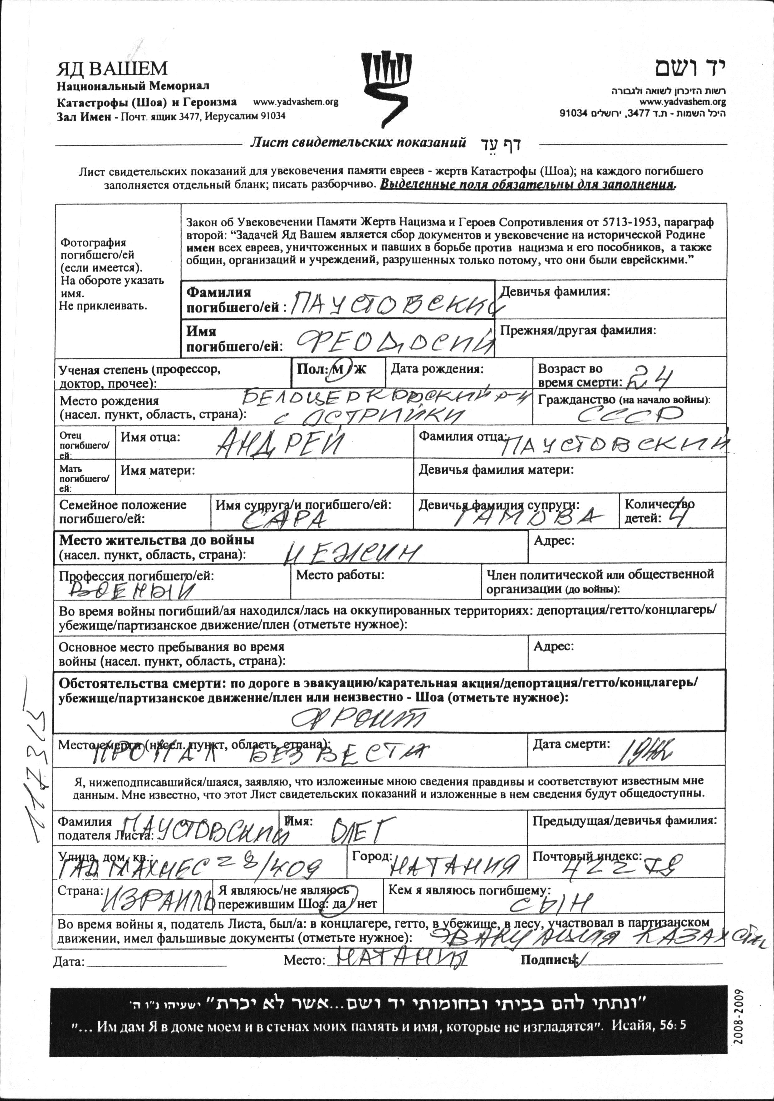 During the Shoah, Jews were murdered in a variety of ways, among them gassing, shooting, burning, drowning or burial alive, exhaustion through forced labor, starvation, epidemic diseases, deprivation of medical care and minimal hygienic conditions, and more. Some Jews took their own lives in order to escape arrest and further persecution, or to end their hopeless, relentless suffering. Tens of thousands of Jewish soldiers serving in the Soviet army and captured as POWs were selected as Jews and murdered. Many were registered as “missing in action”.