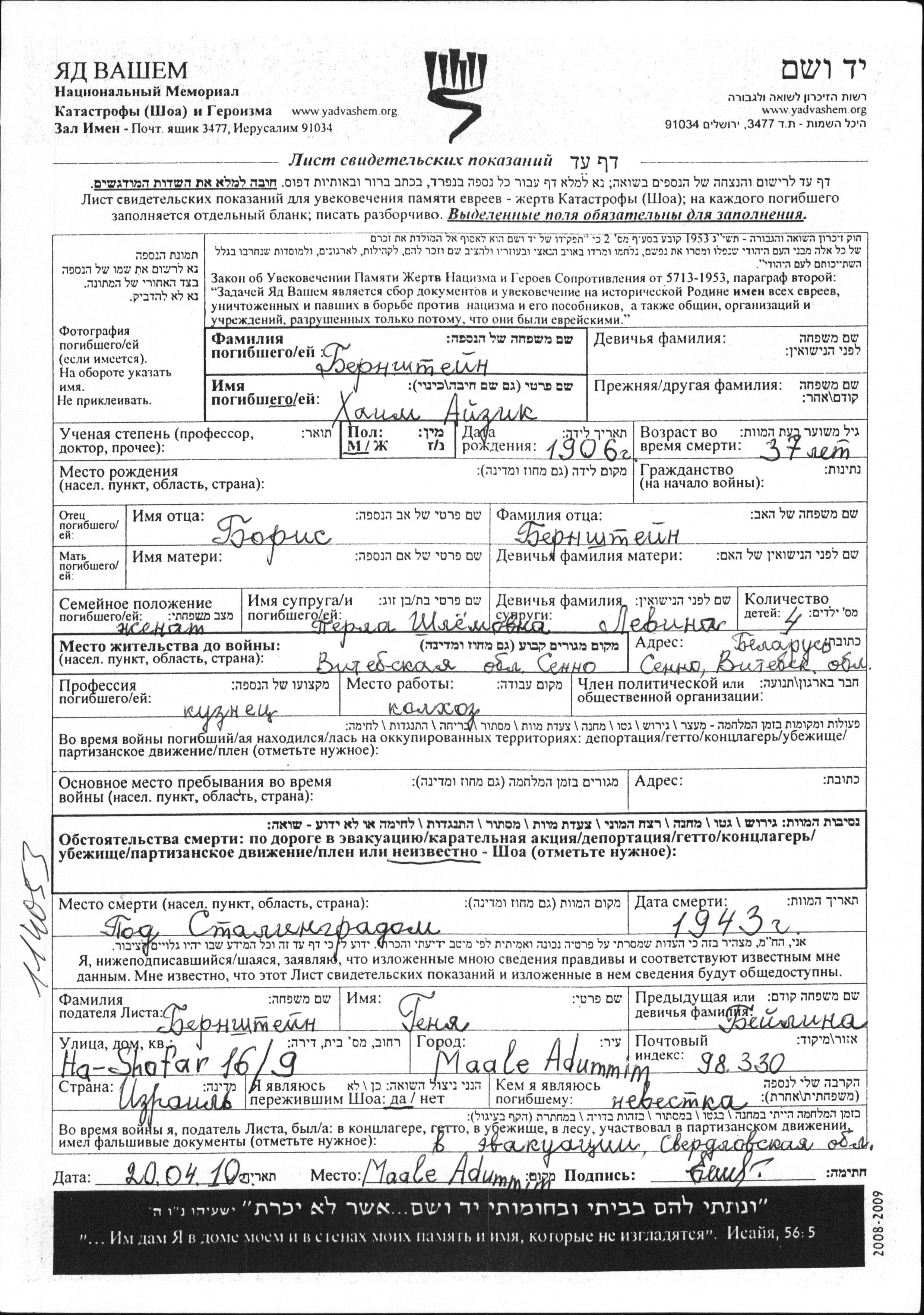 Search by last name of the submitter of the Page of Testimony, including diminutives or nicknames