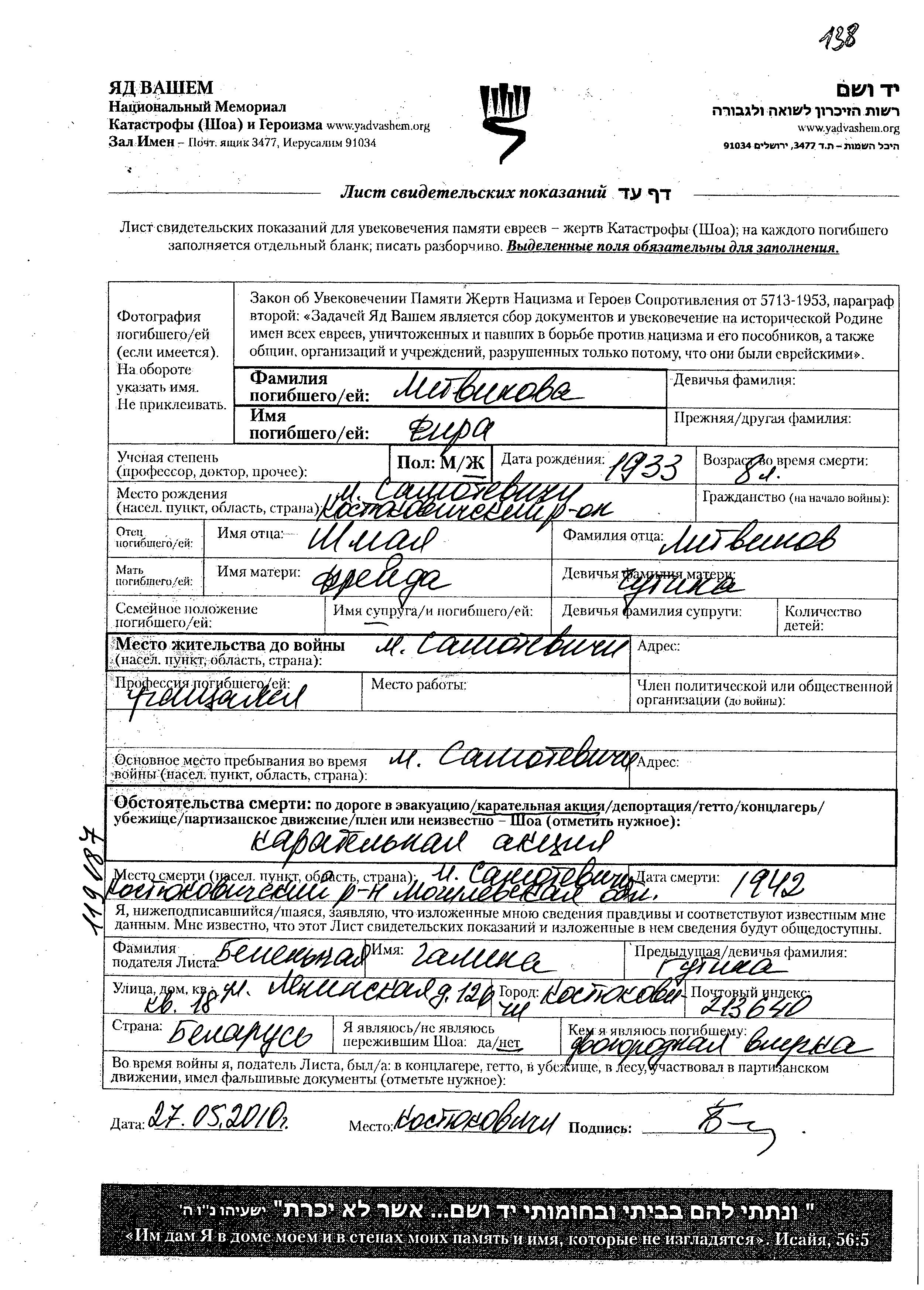 Search by last name of the submitter of the Page of Testimony, including diminutives or nicknames