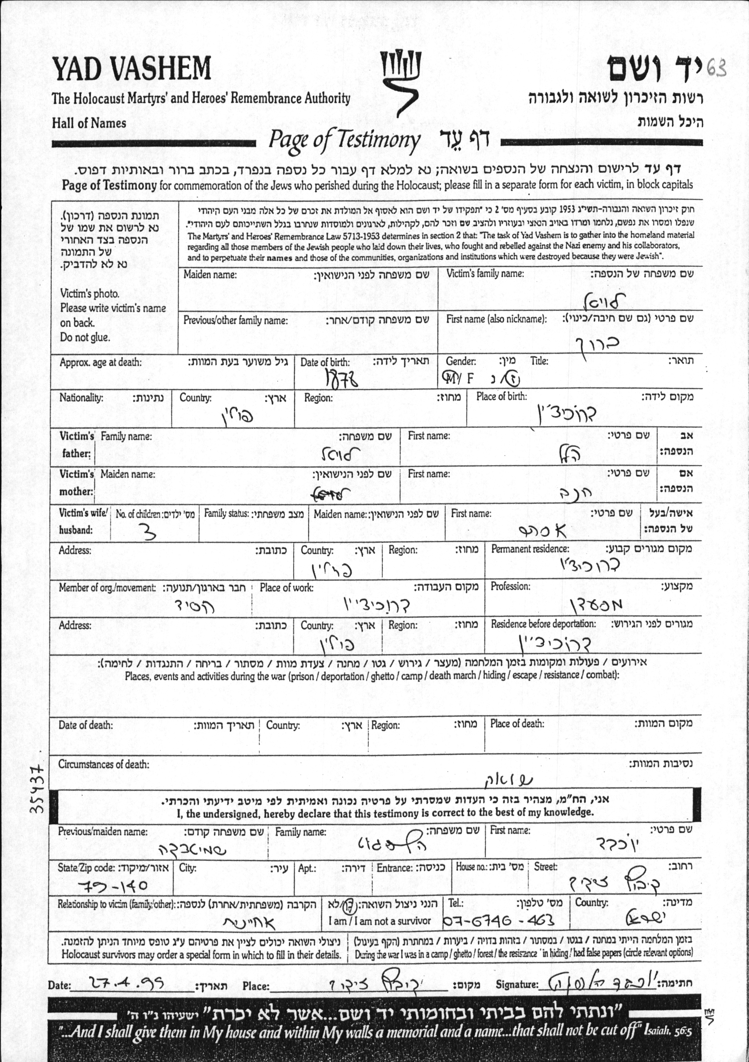 Yad Vashem - Pages of Testimony Names Memorial Collection