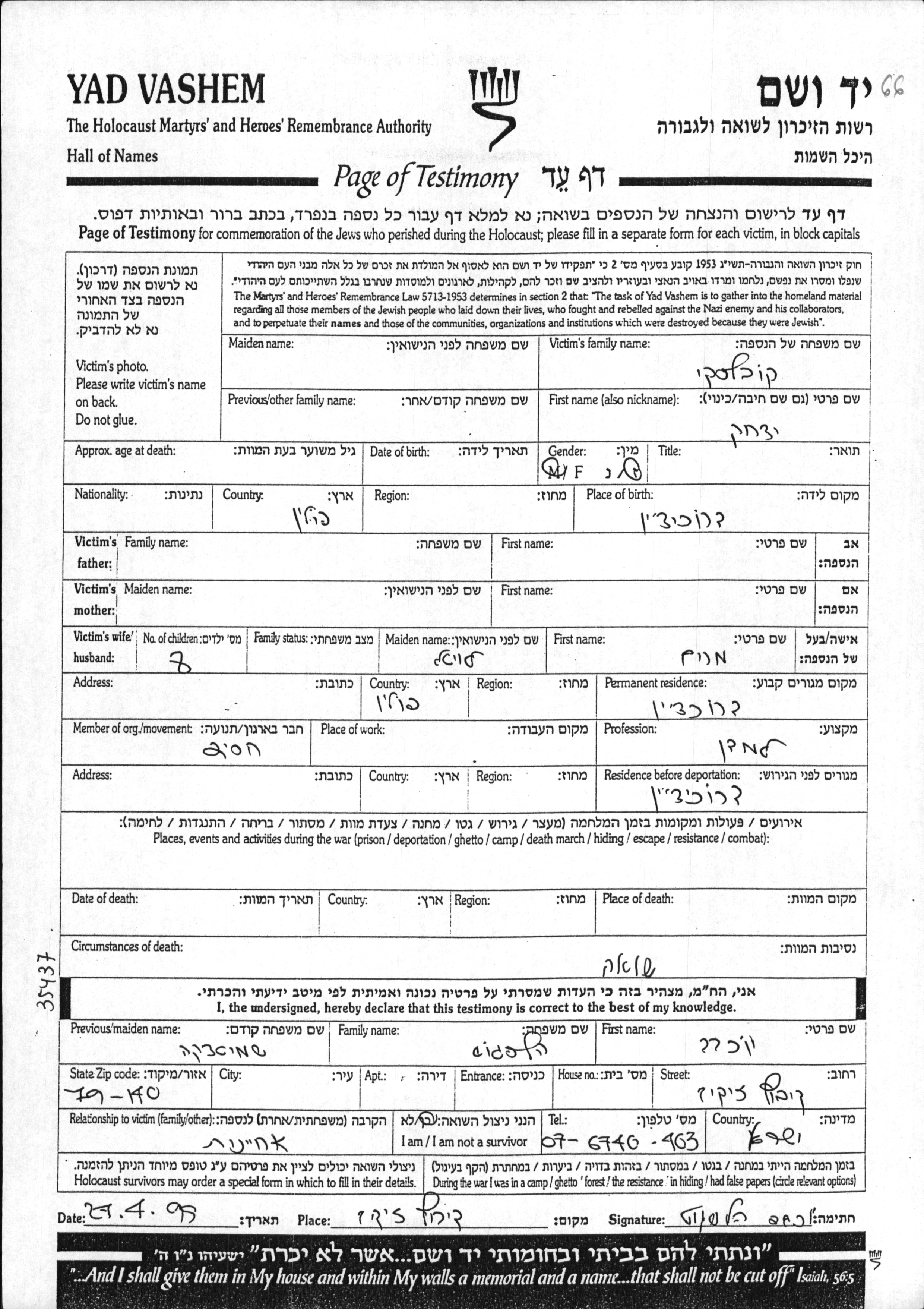 Yad Vashem - Pages of Testimony Names Memorial Collection