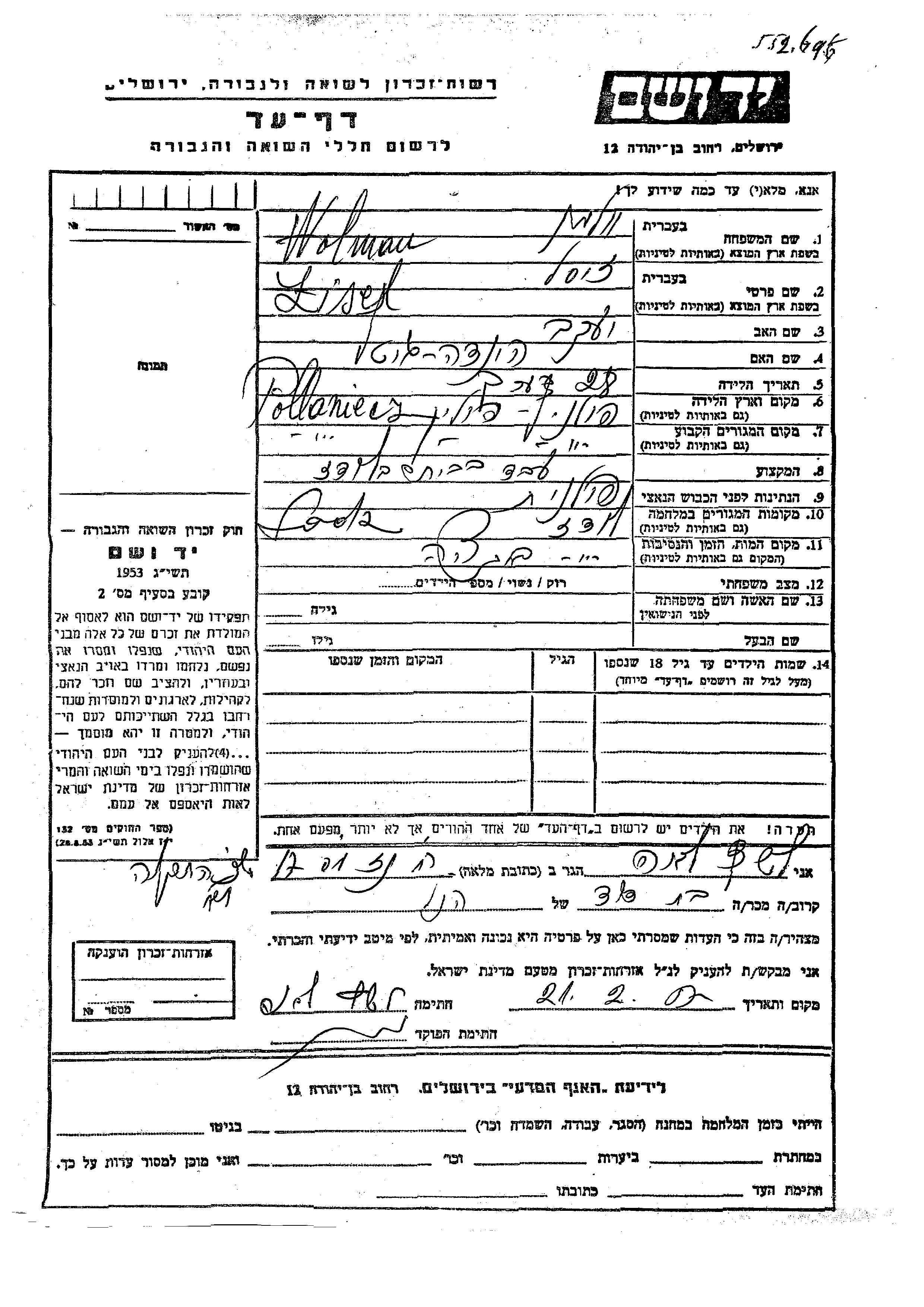Zisel Wolman was born in Polaniec, Poland to Yaakov and Hinda Gitel. He was a factory worker. Prior to WWII he lived in Polaniec, Poland. During the war he was in Lodz, Poland. Zisel was murdered in the Shoah. Place of death: Lodz, Poland.
