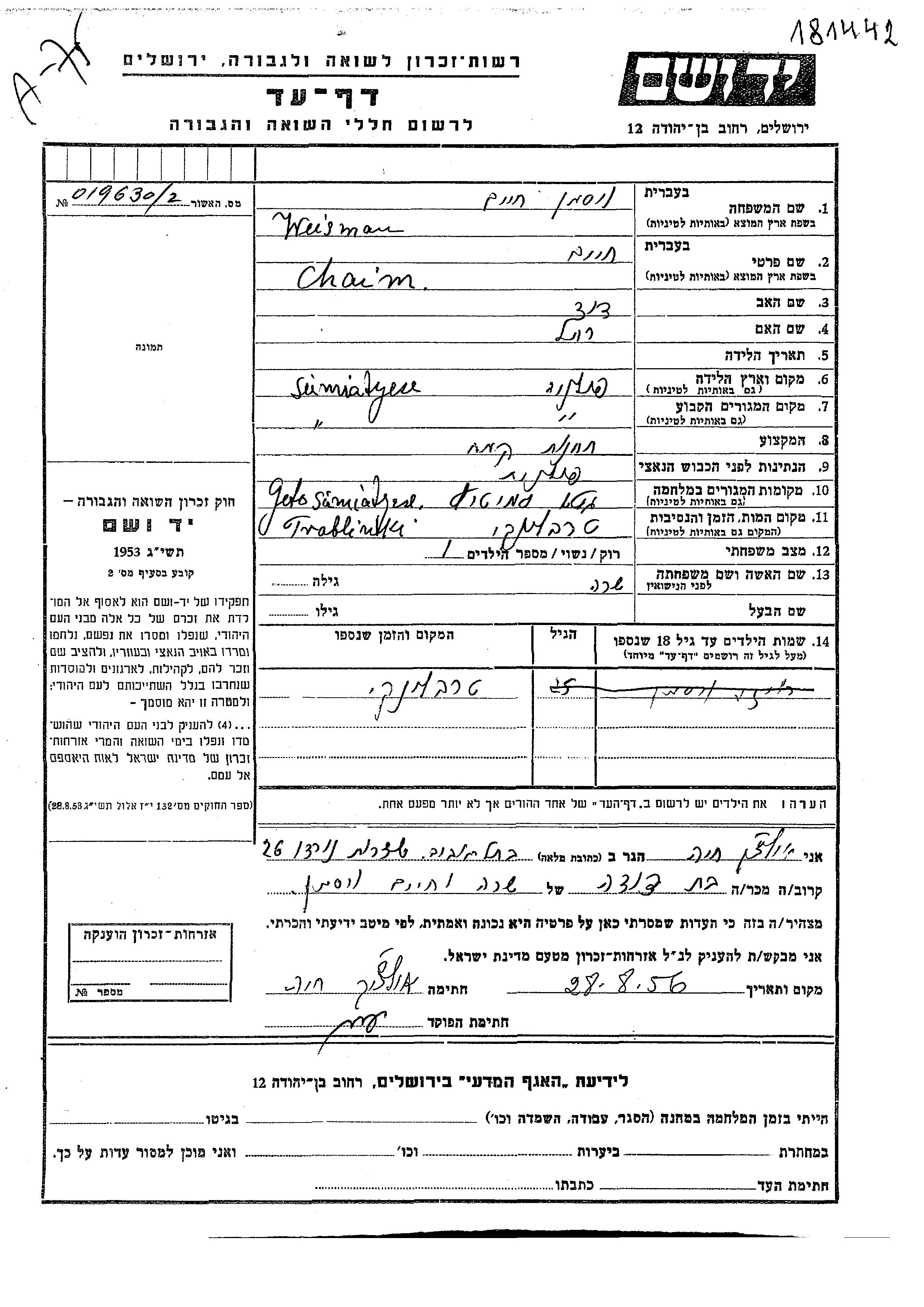 Weisman Chaim Siemiatycze, Poland Page of Testimony