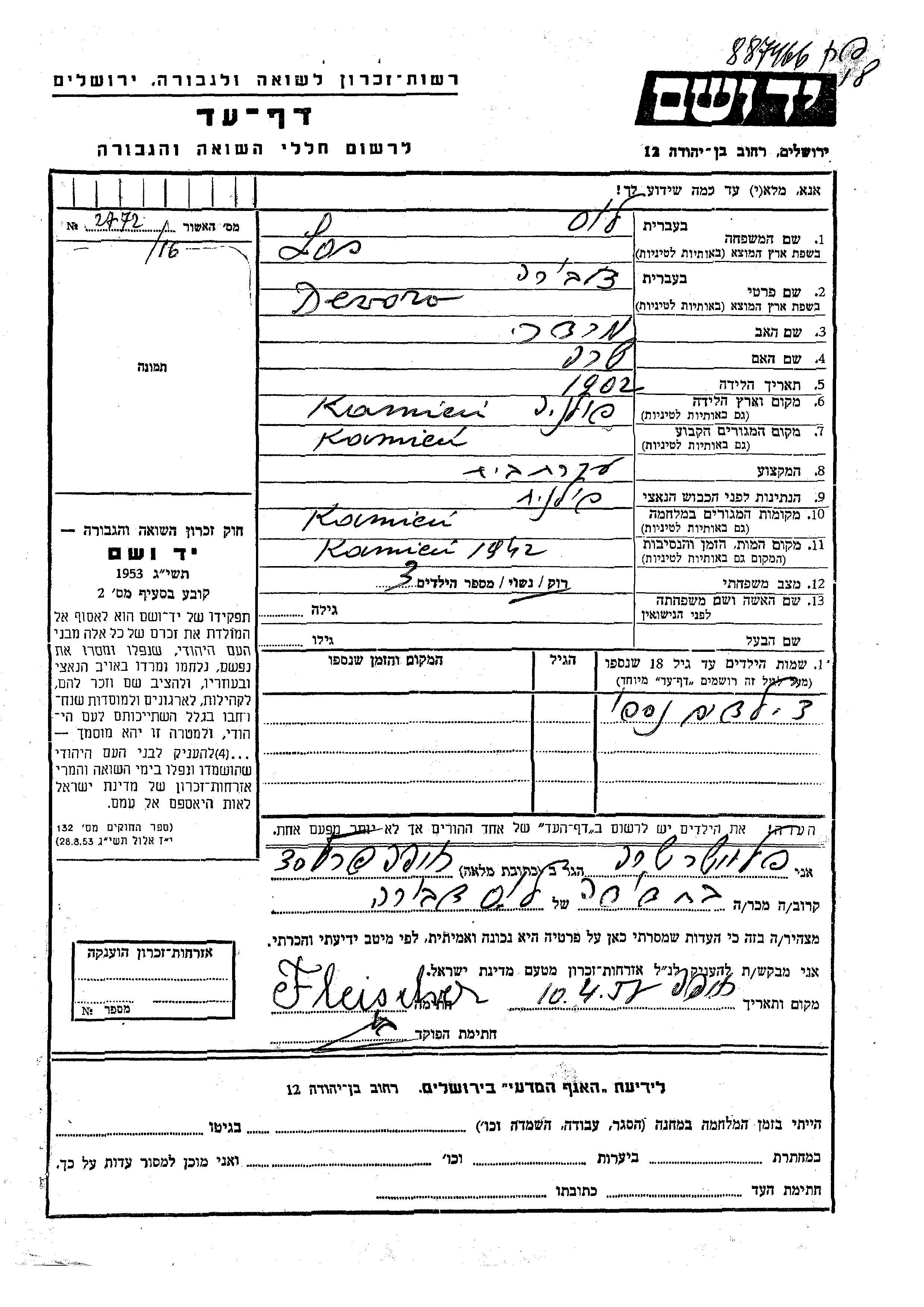 Devora Los was born in Kamien, Poland, 1902 to Mordekhai and Sara. She was a housewife and married. Prior to WWII she lived in Kamien, Poland. During the war she was in Kamien, Poland. Devora was murdered in the Shoah. Place of death: Kamien, Poland, 1942.