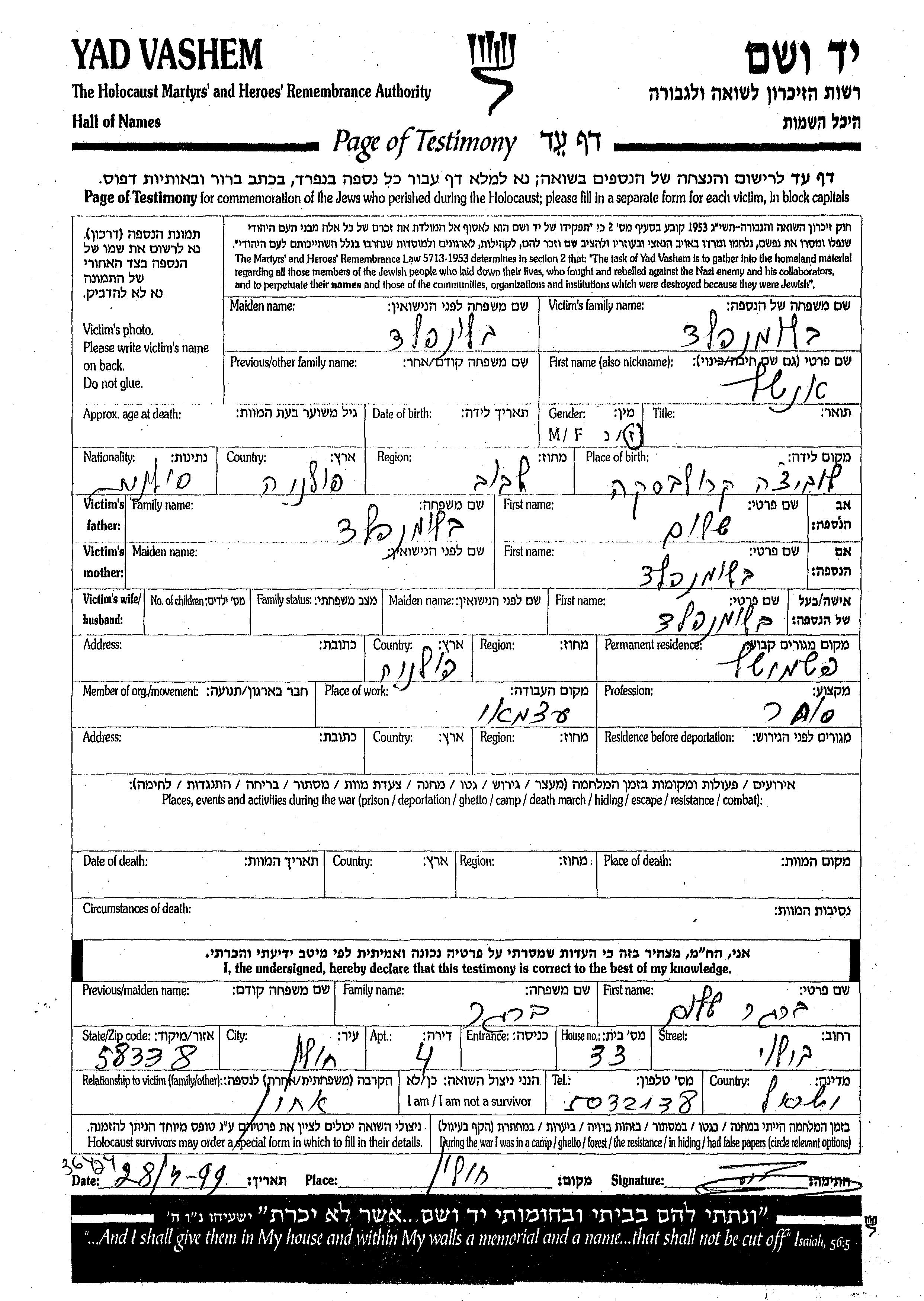 Yad Vashem - Pages of Testimony Names Memorial Collection
