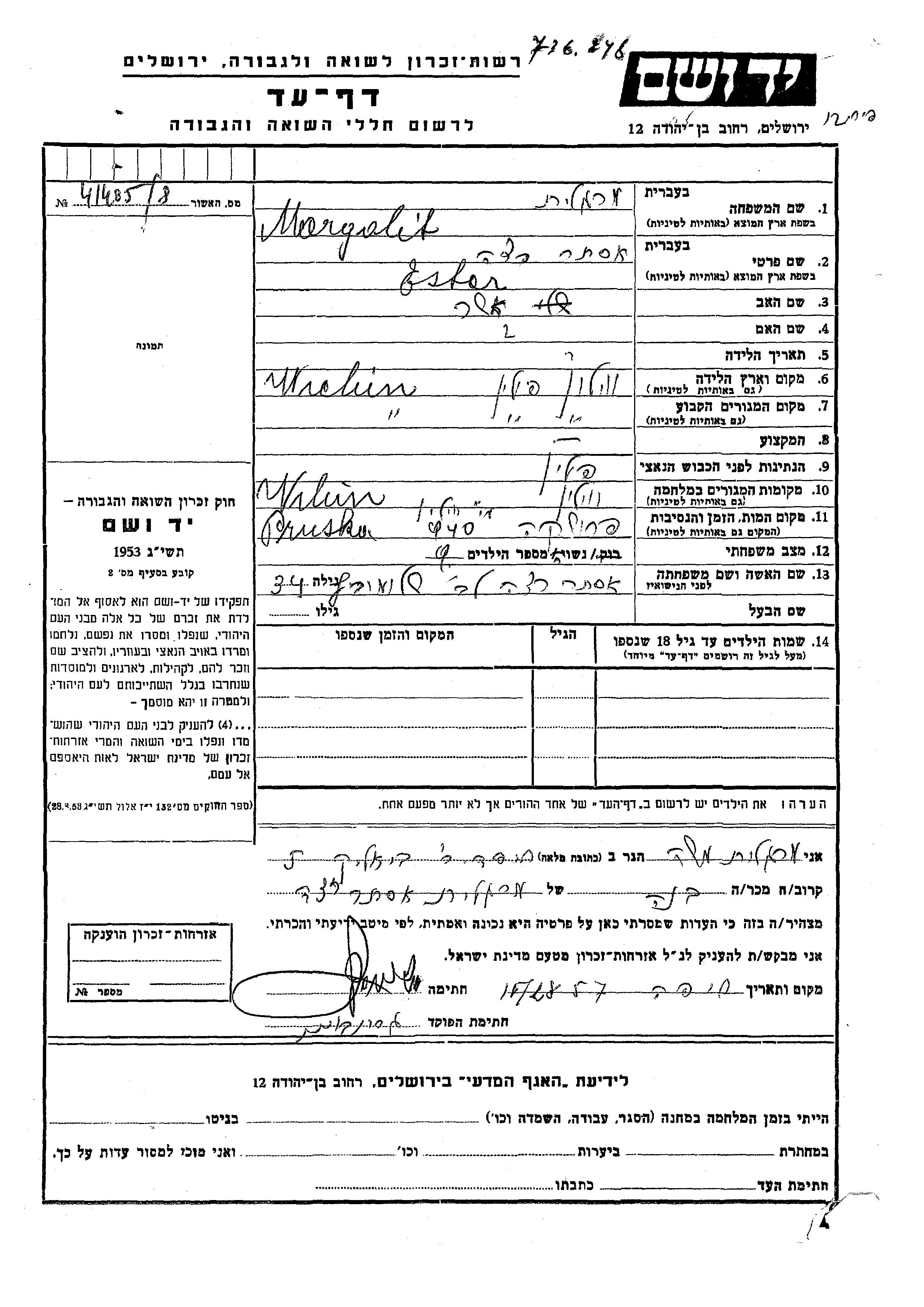 Yad Vashem - Pages of Testimony Names Memorial Collection