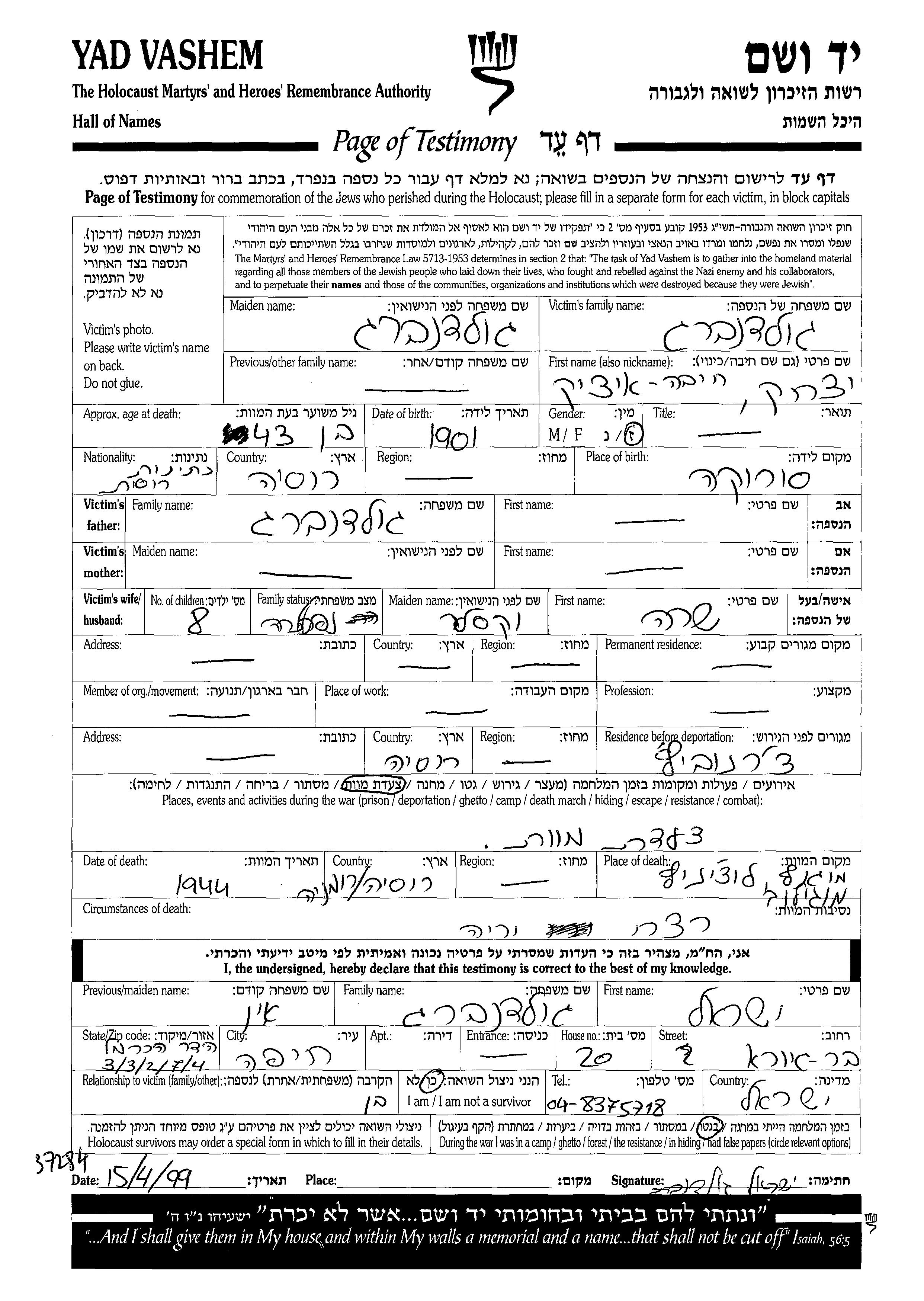 Yad Vashem - Pages of Testimony Names Memorial Collection