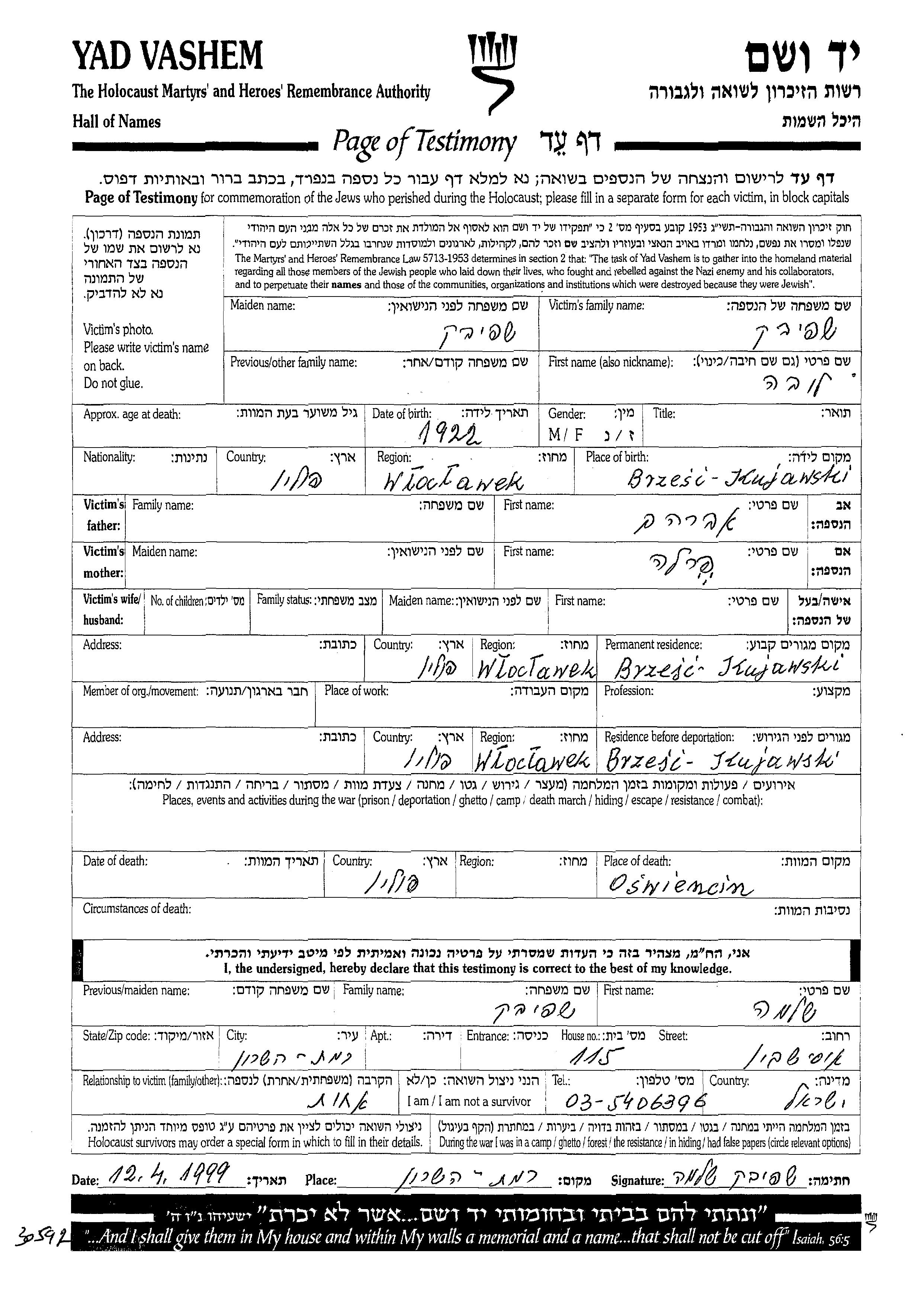 Luba Shpivak was born in Brzesc Kujawski, Poland, 1922 to Avraham and Perla. Prior to WWII she lived in Brzesc Kujawski, Poland. During the war she was in Brzesc Kujawski, Poland. Luba was murdered in the Shoah. Place of death: Auschwitz, Poland.