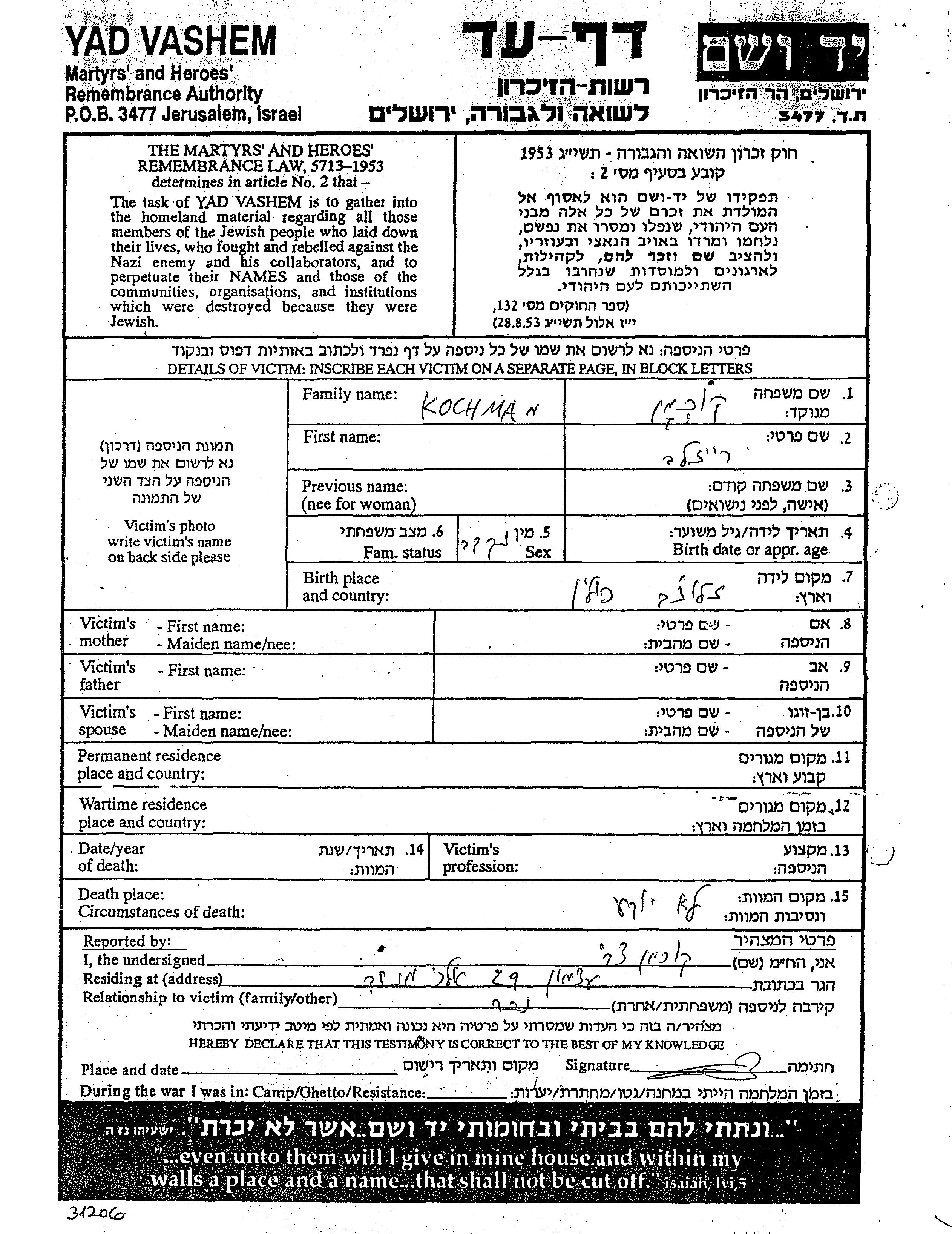 Yad Vashem - Pages of Testimony Names Memorial Collection
