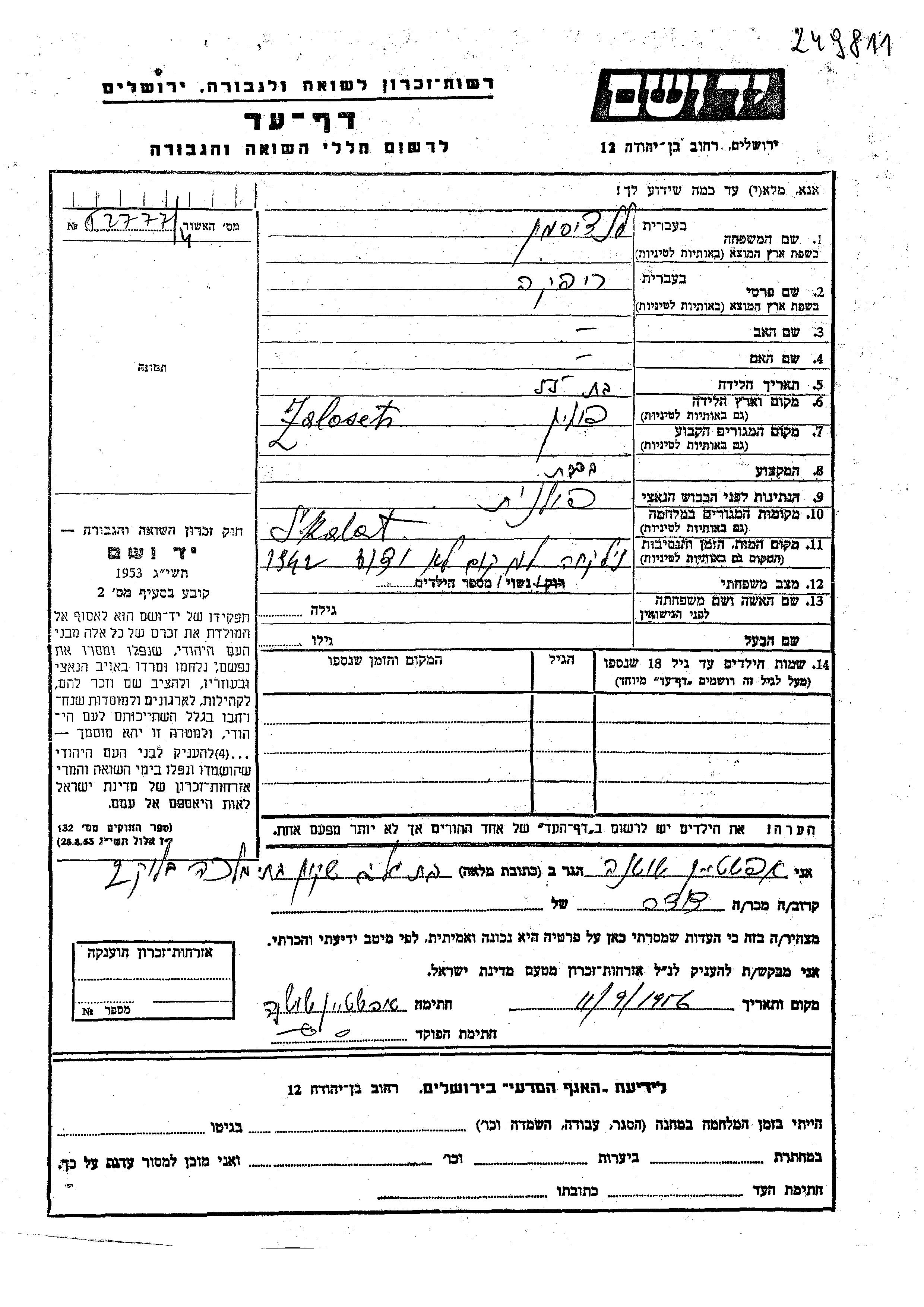 Yad Vashem - Pages of Testimony Names Memorial Collection