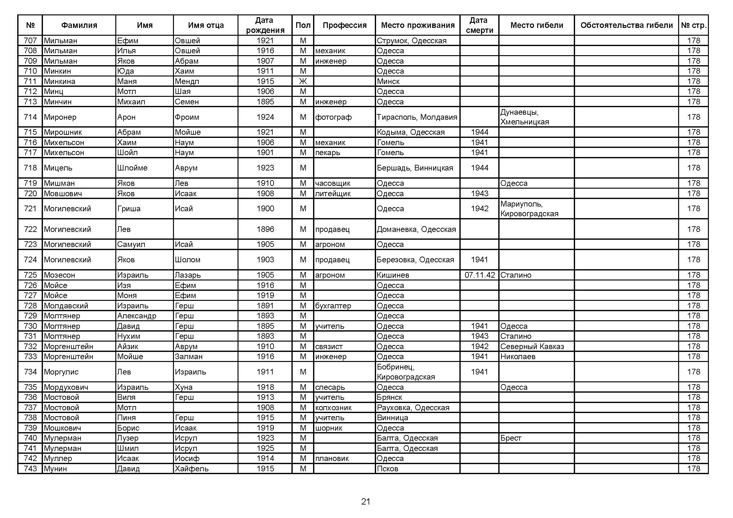 Munin David 1915 Pskov, Russia (USSR) List of persecuted persons