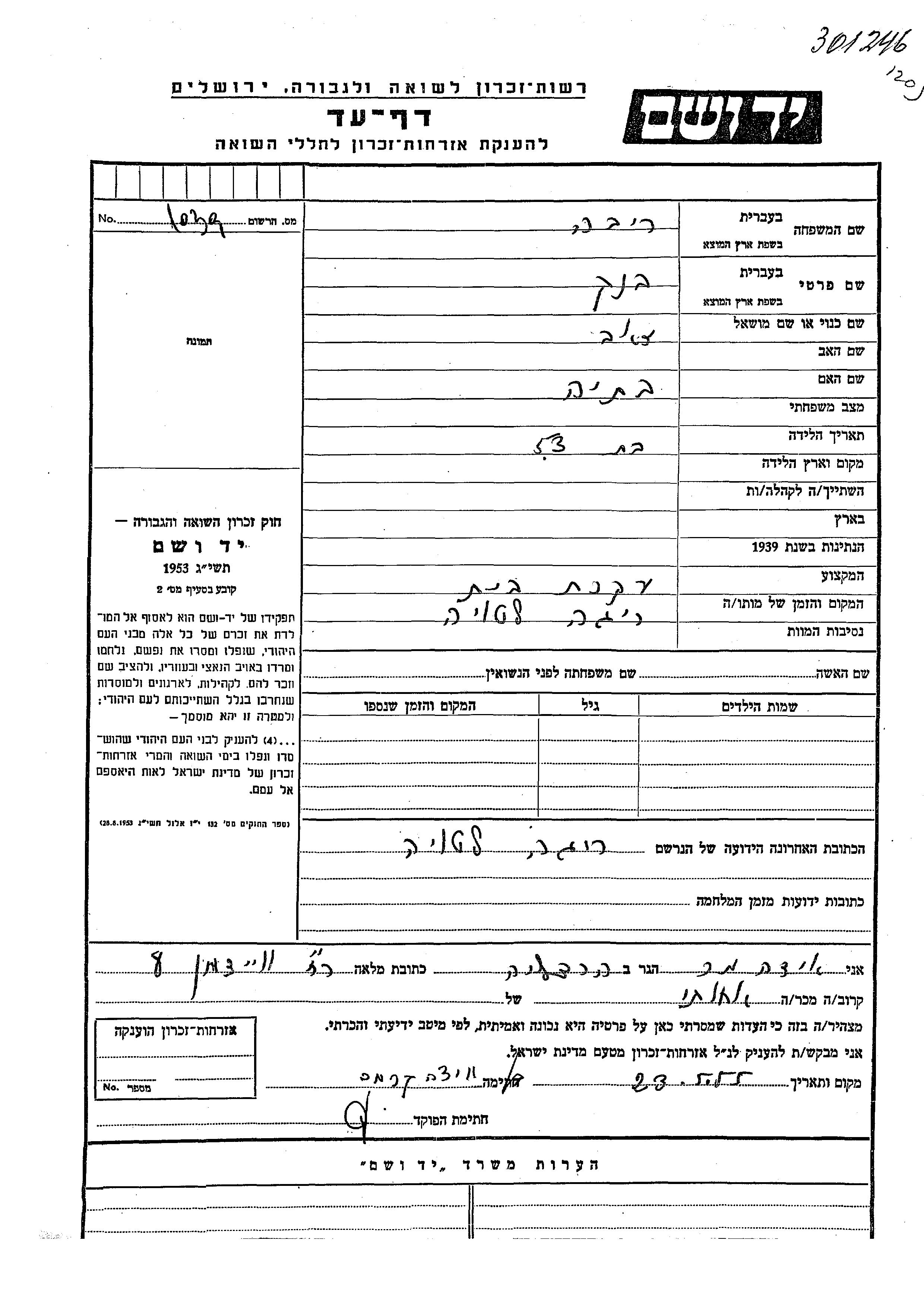 Yad Vashem - Pages of Testimony Names Memorial Collection