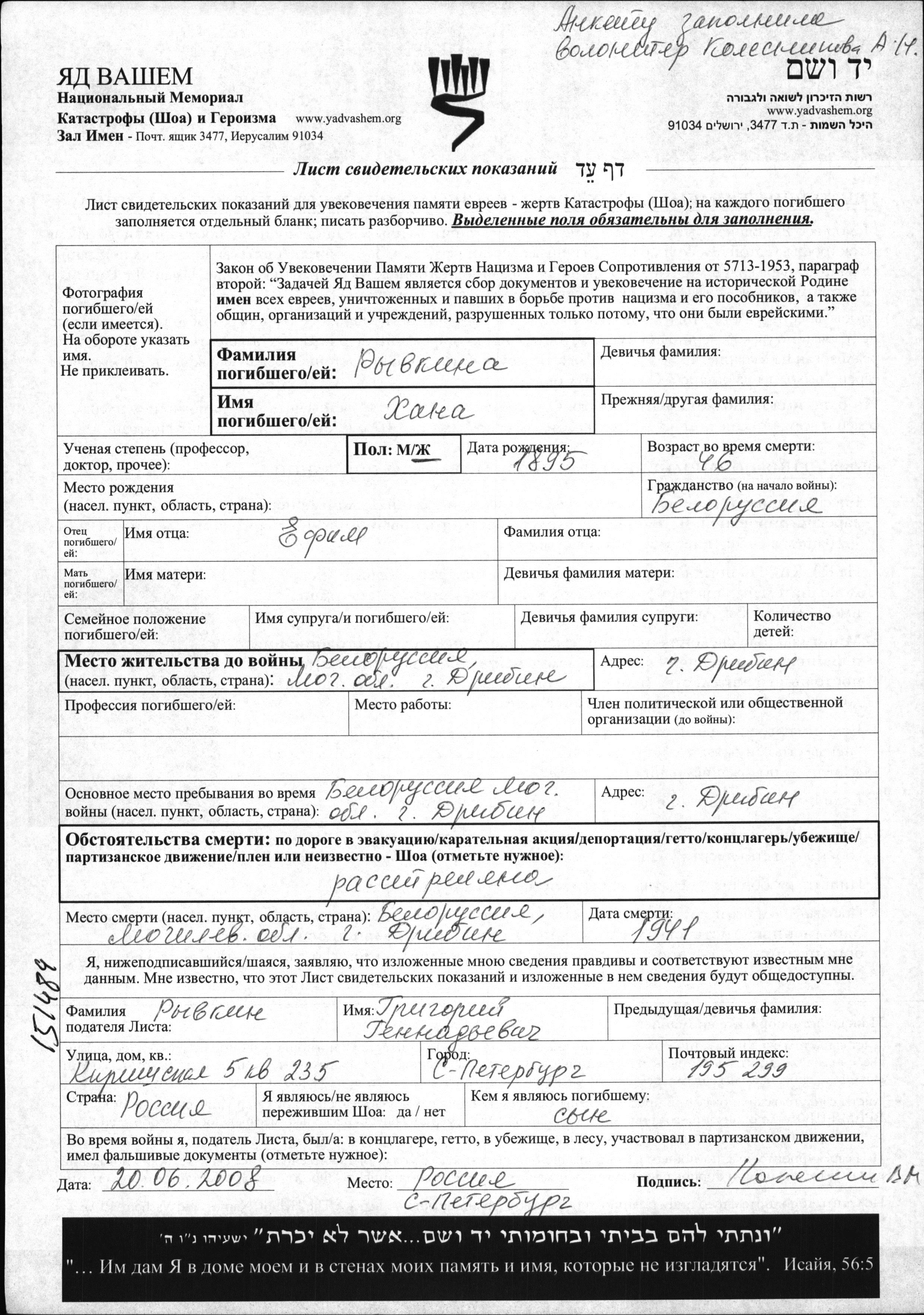 Search by last name of the submitter of the Page of Testimony, including diminutives or nicknames