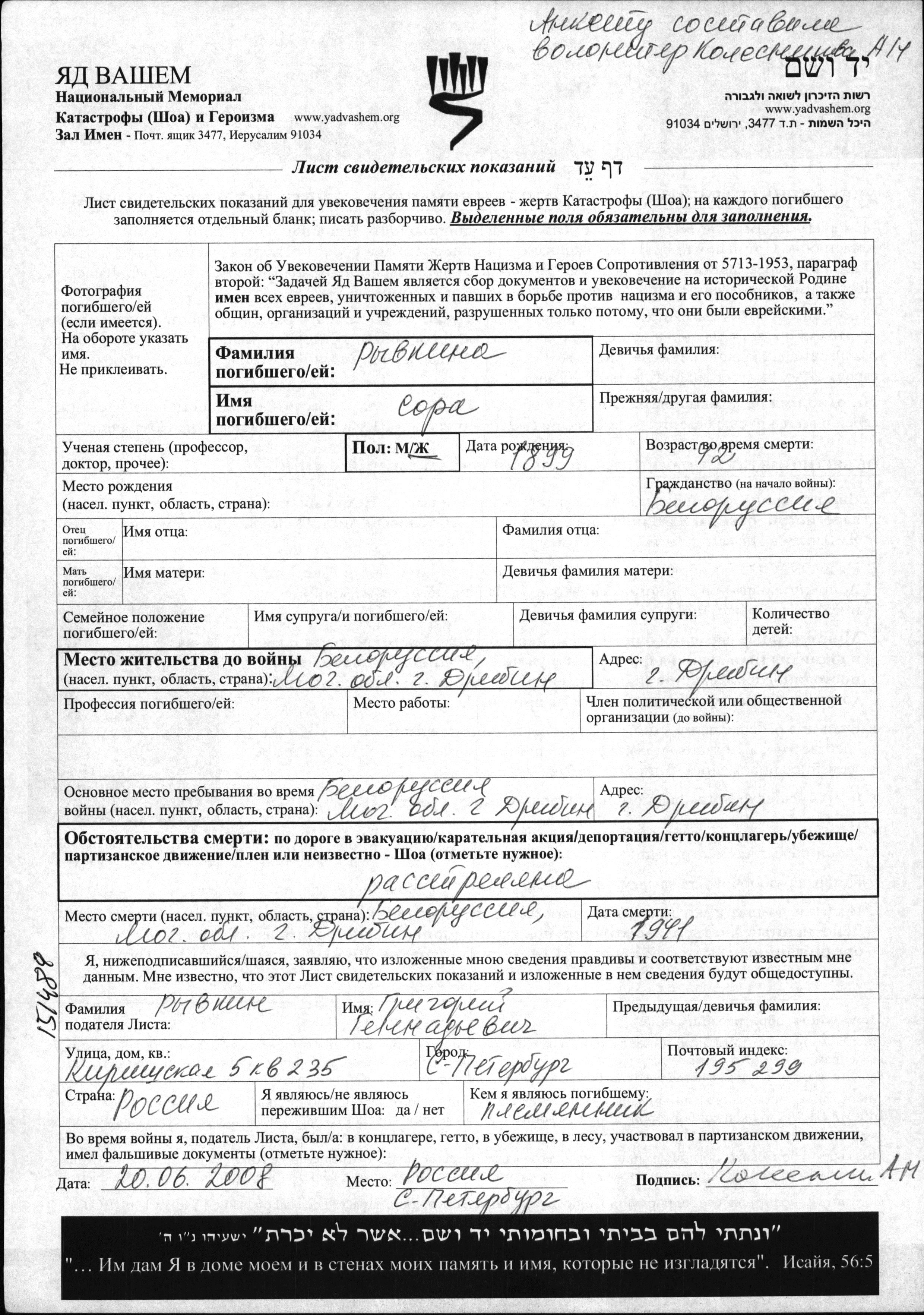 Search by last name of the submitter of the Page of Testimony, including diminutives or nicknames