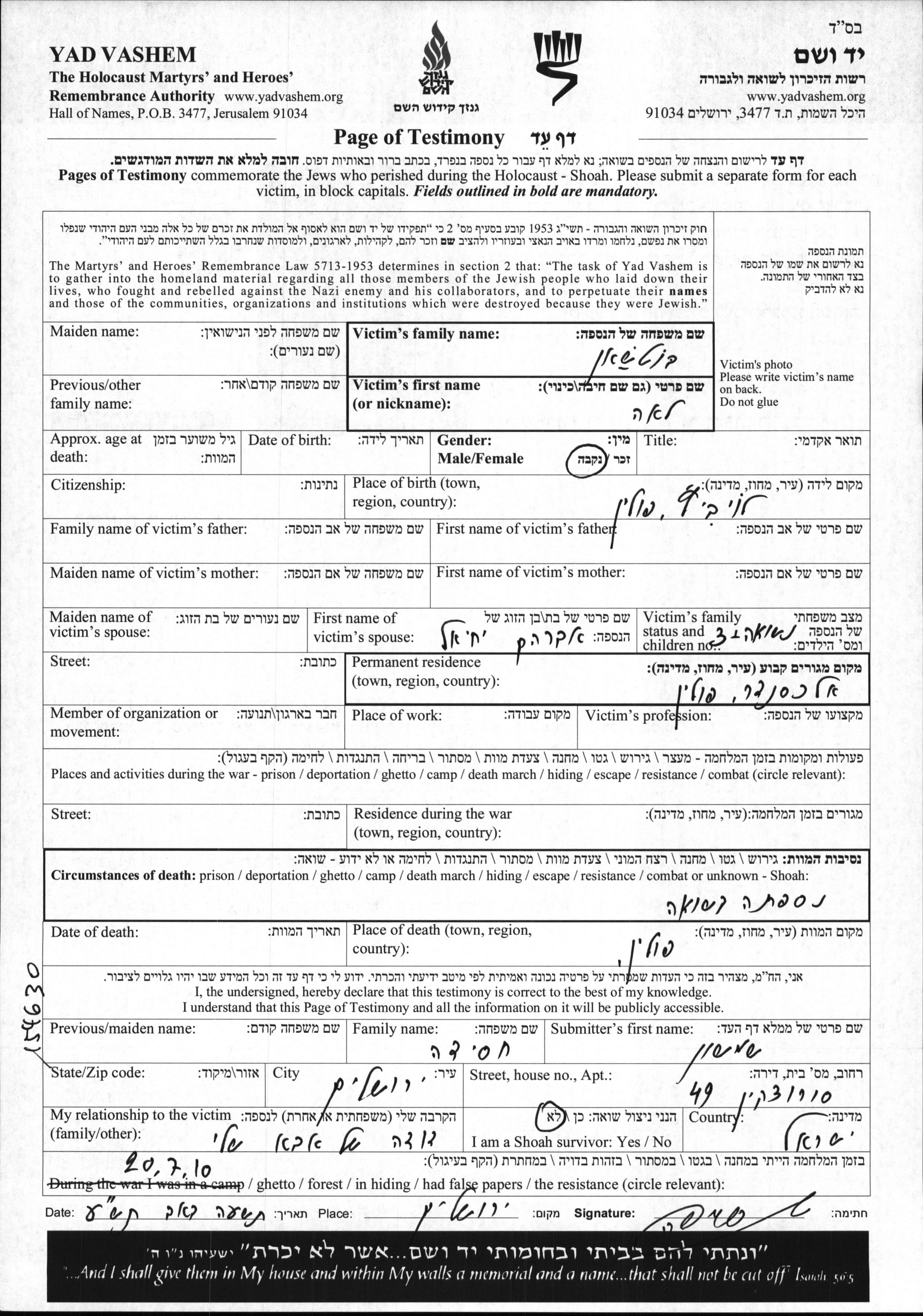 Yad Vashem - Pages of Testimony Names Memorial Collection