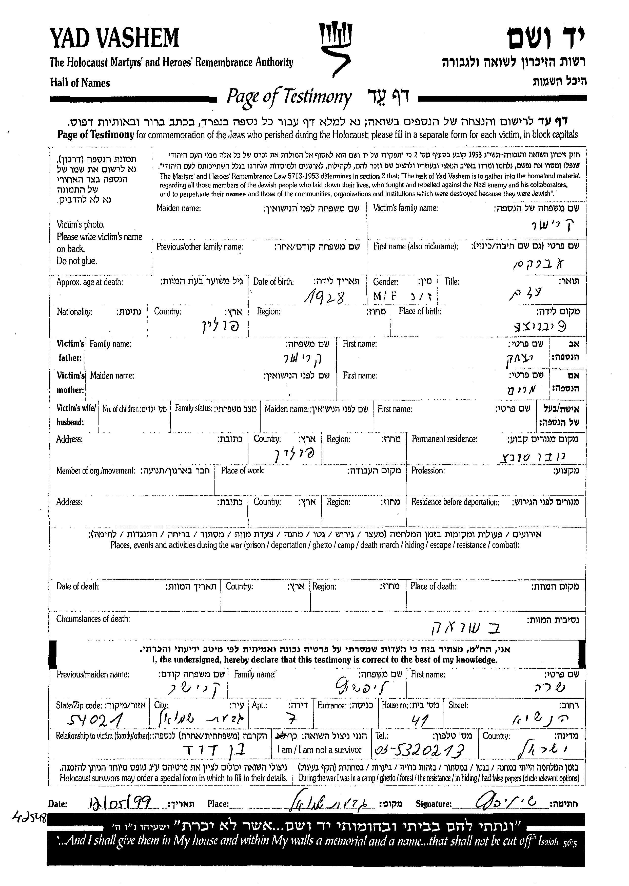 Yad Vashem - Pages of Testimony Names Memorial Collection