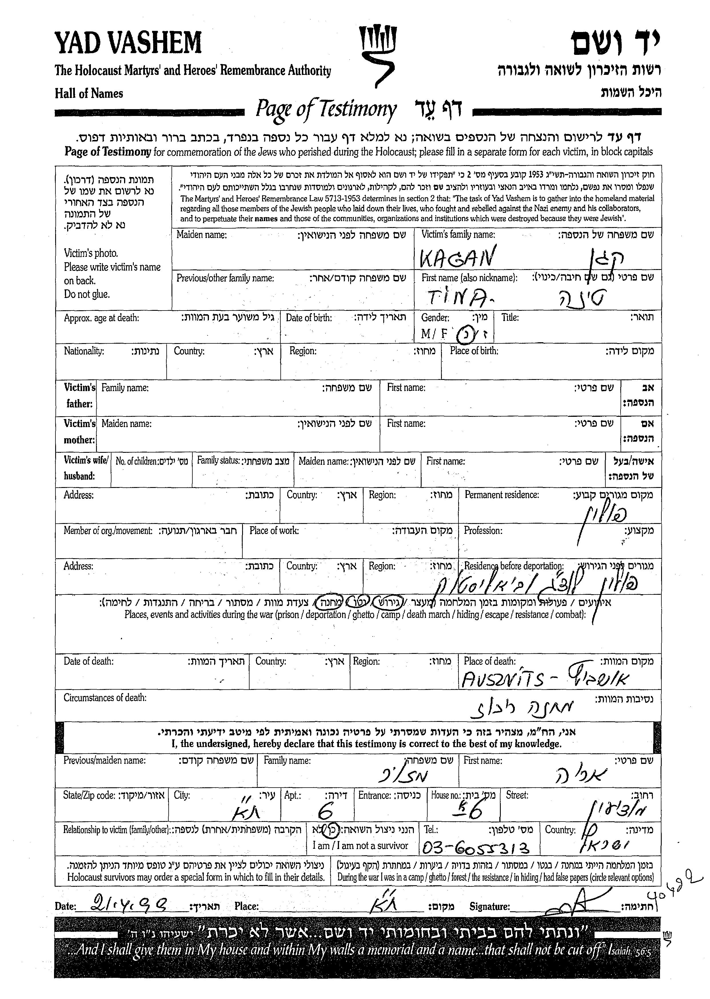 Search by last name of the submitter of the Page of Testimony, including diminutives or nicknames