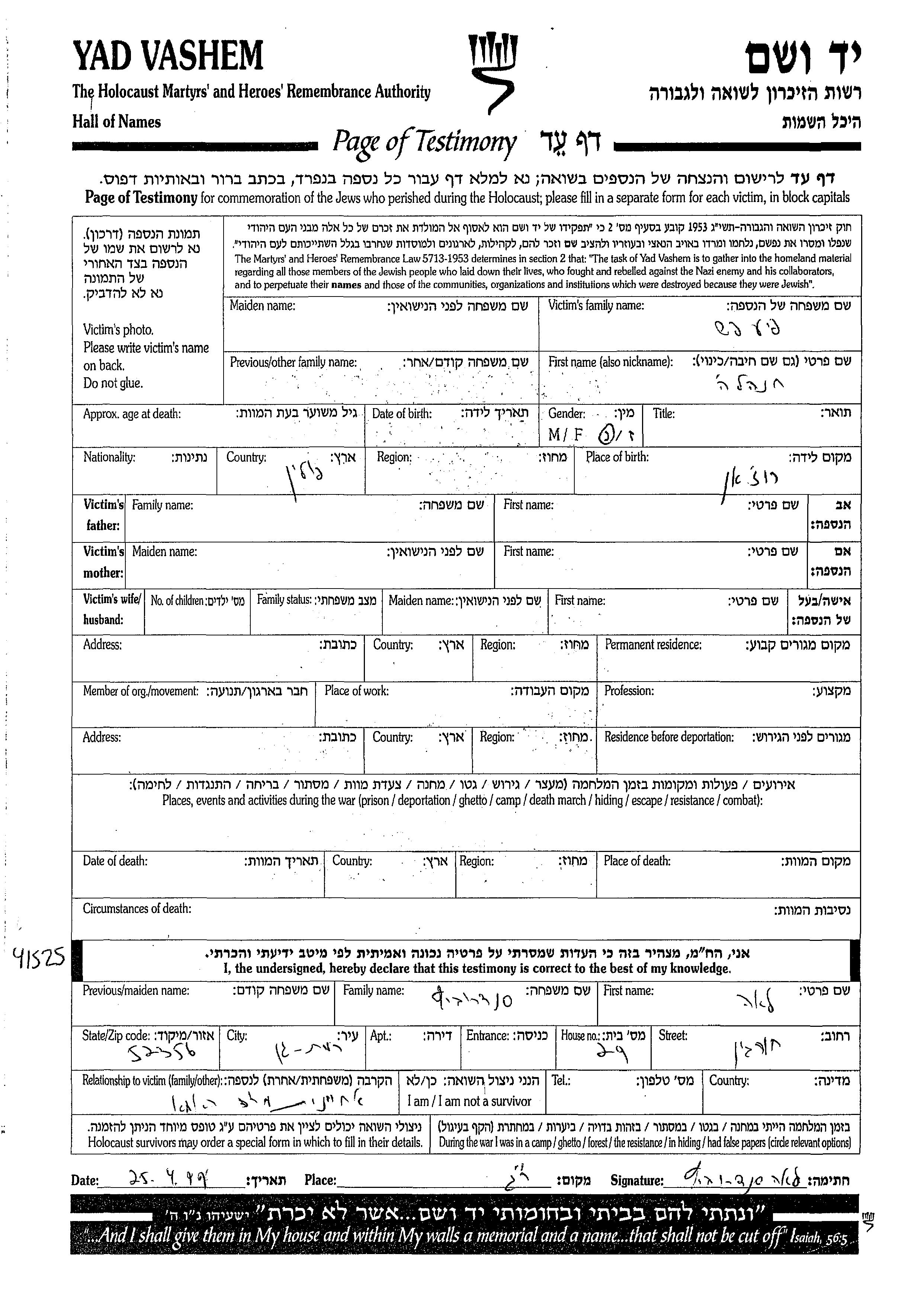 Yad Vashem - Pages of Testimony Names Memorial Collection