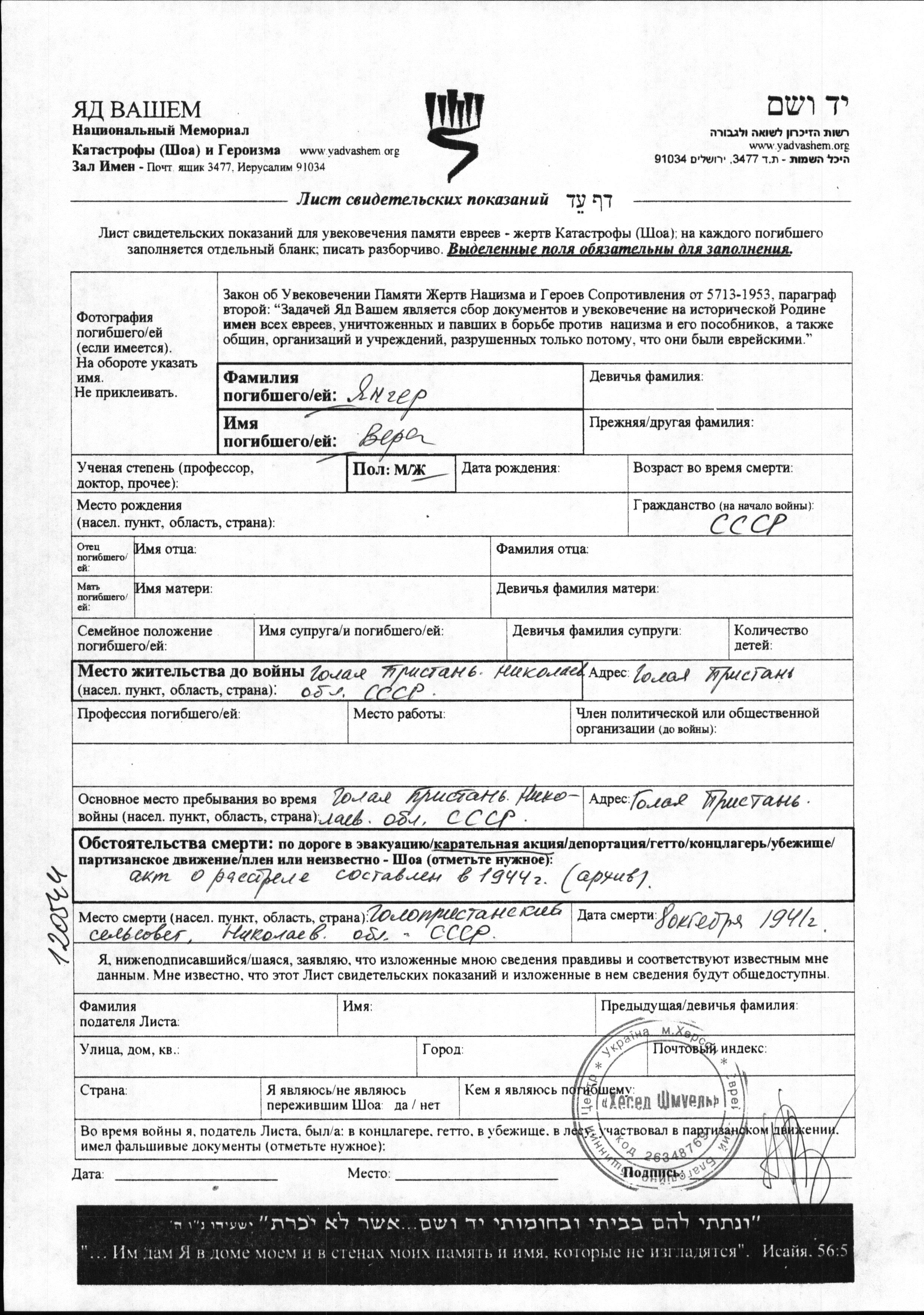 Search by last name of the submitter of the Page of Testimony, including diminutives or nicknames