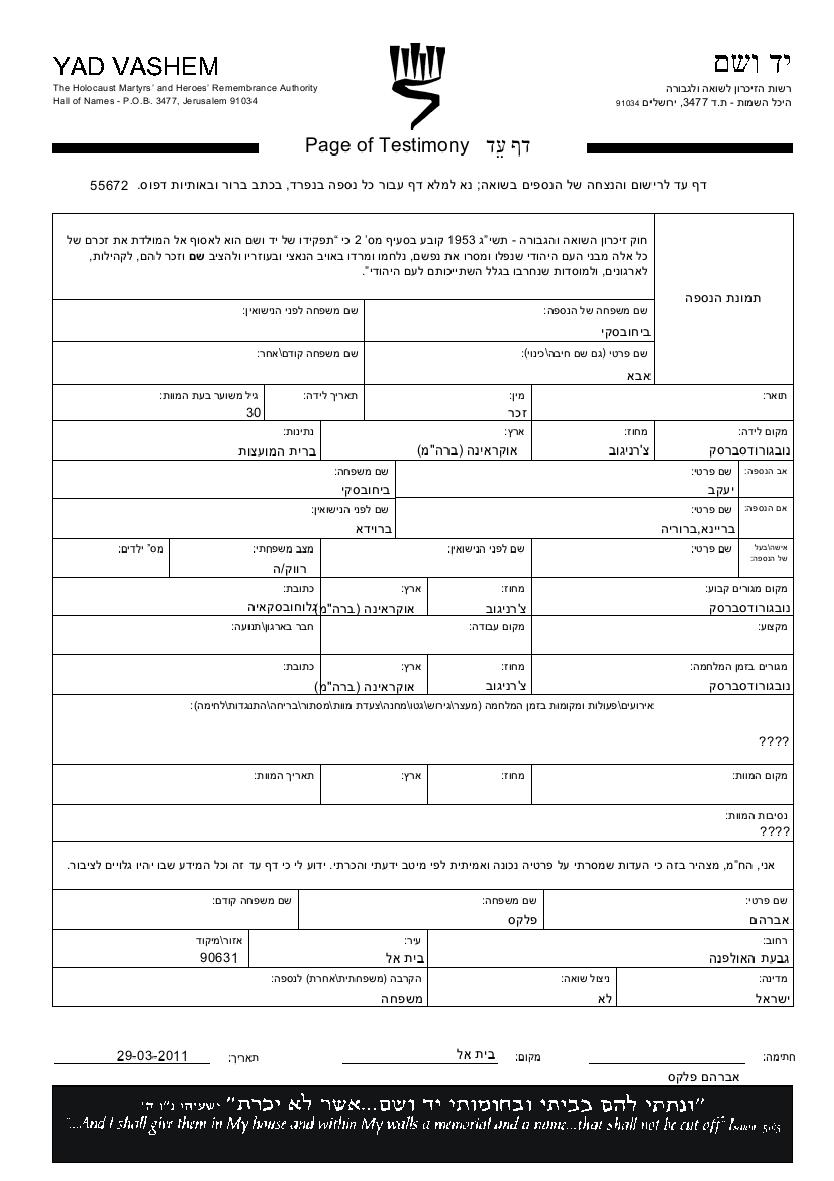 Bykhovski Aba Novgorod Severski, Ukraine (USSR) Page of Testimony (digital)