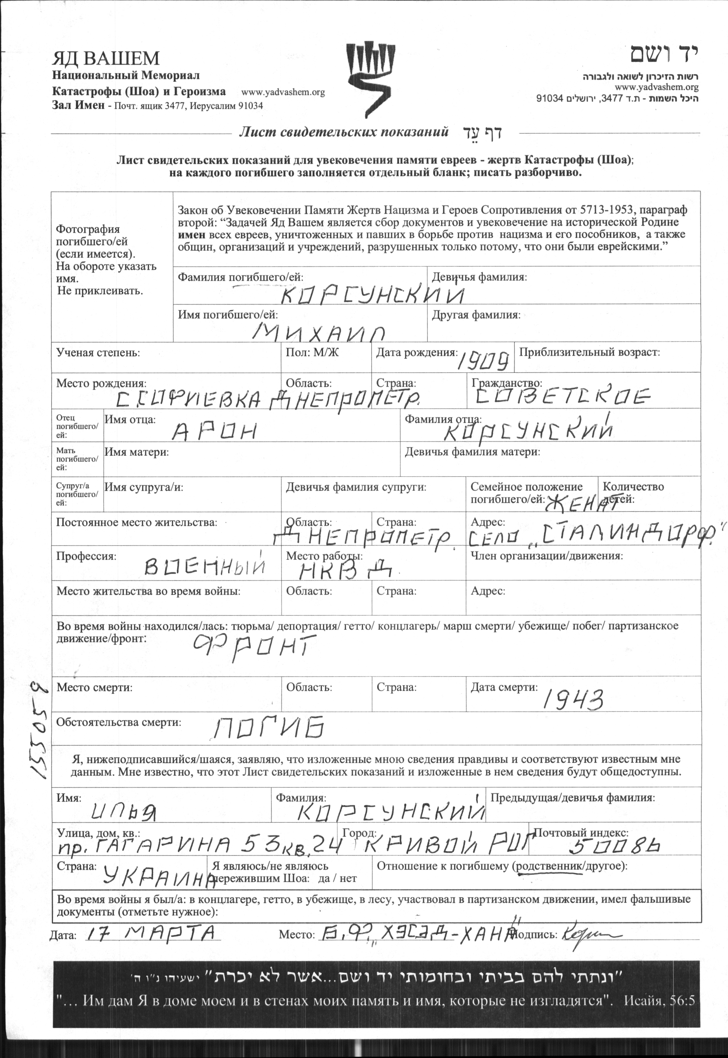 Search by last name of the submitter of the Page of Testimony, including diminutives or nicknames