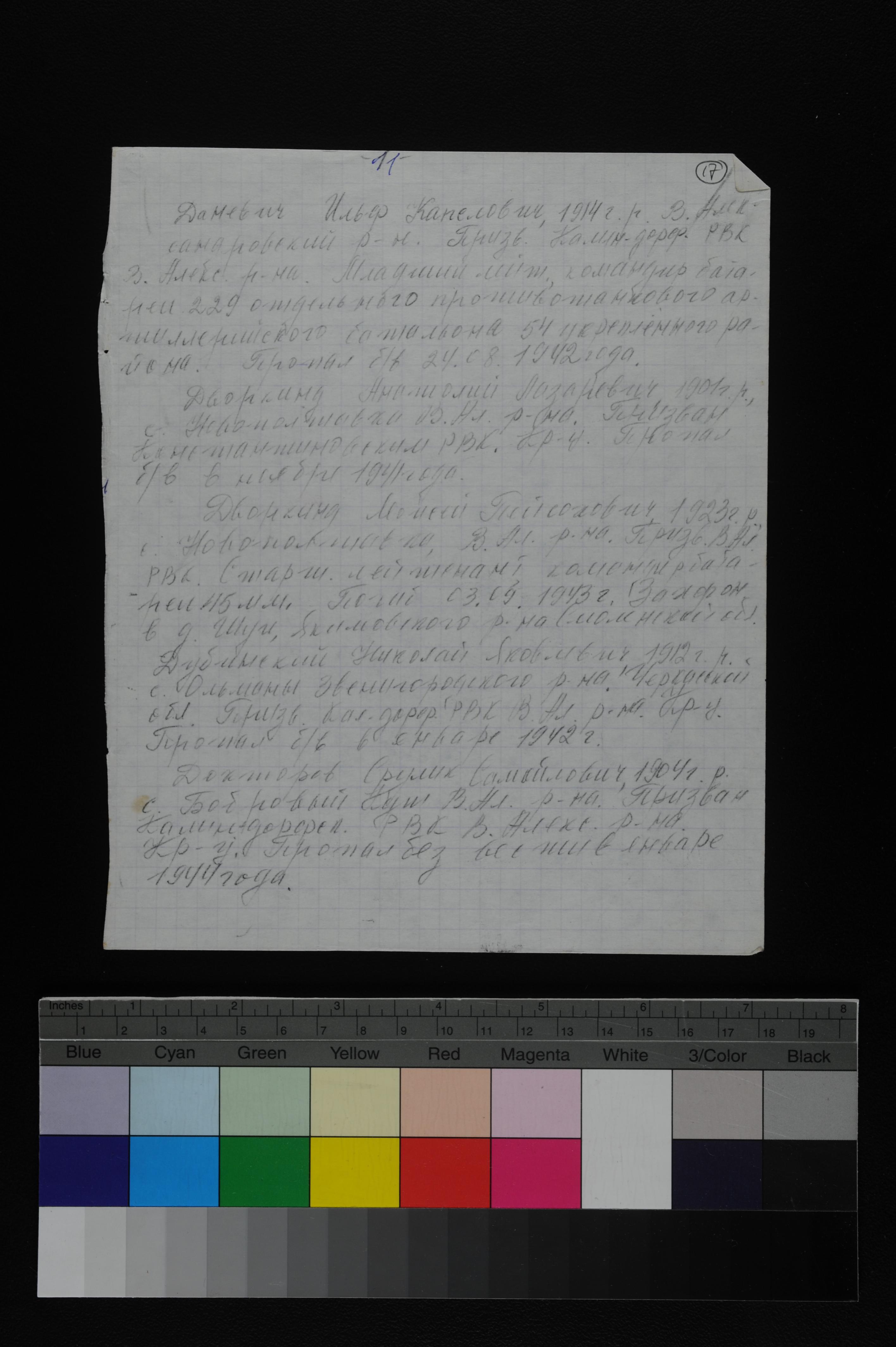 Nikolay Dubinski was born, 1912 to Yakov. Prior to WWII he lived in Olshana, Ukraine (USSR). During the war he was in the Soviet armed forces. Nikolay was murdered in the Shoah. Place of death: unknown, 01/1942.