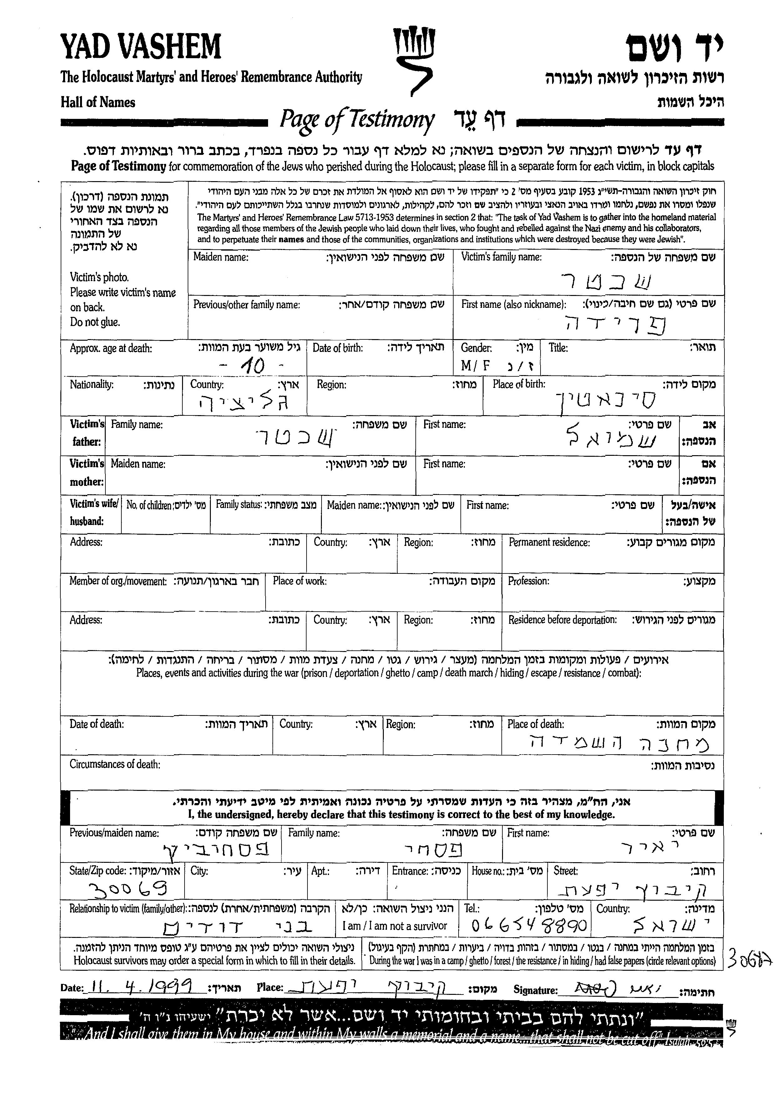 Yad Vashem - Pages of Testimony Names Memorial Collection