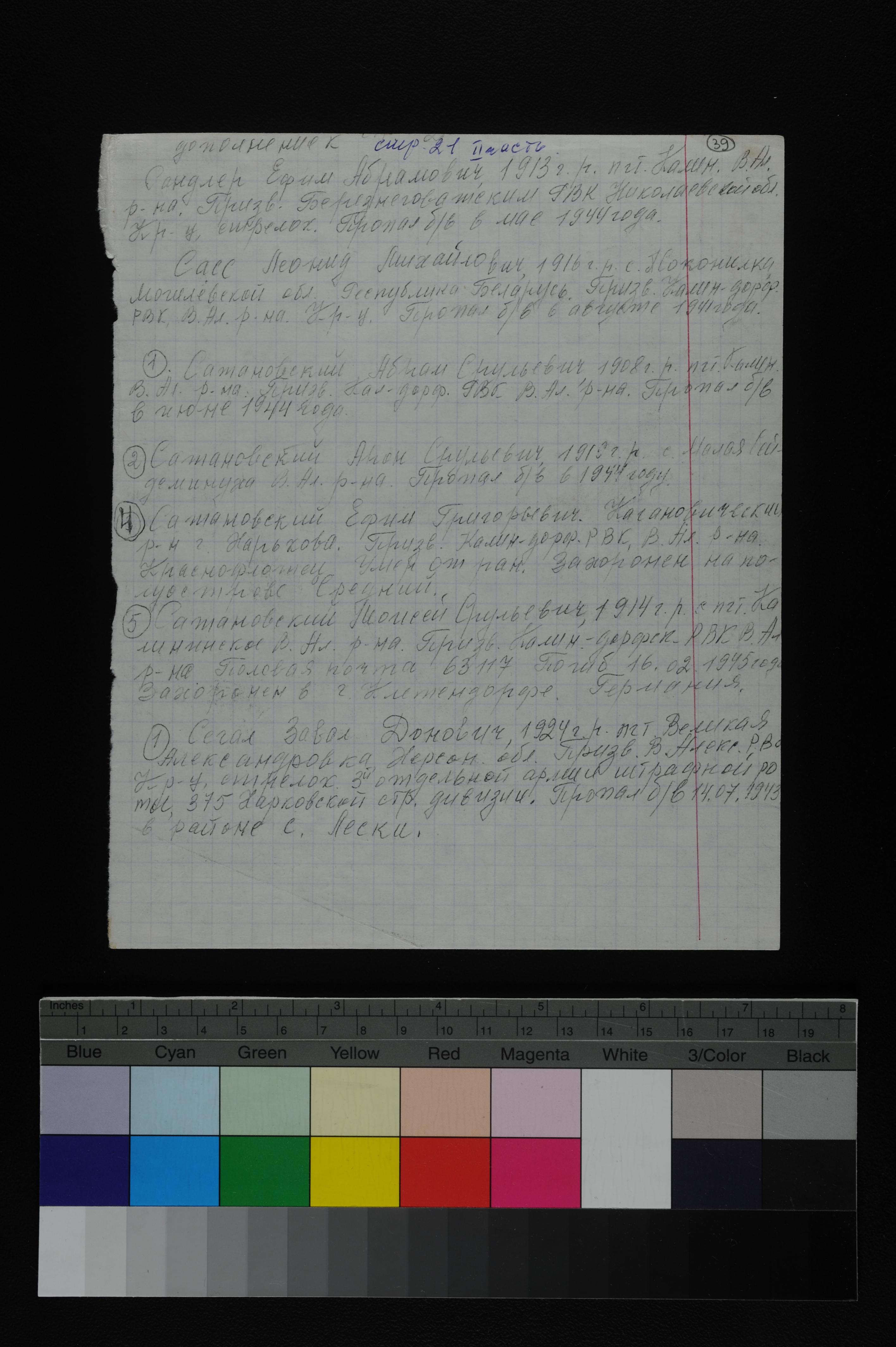 Zavol Segal was born, 1924 to Don. Prior to WWII he lived in Bolshaya Aleksandrovka, Ukraine (USSR). During the war he was in the Soviet armed forces. Zavol was murdered in the Shoah. Place of death: unknown, 14/07/1943.