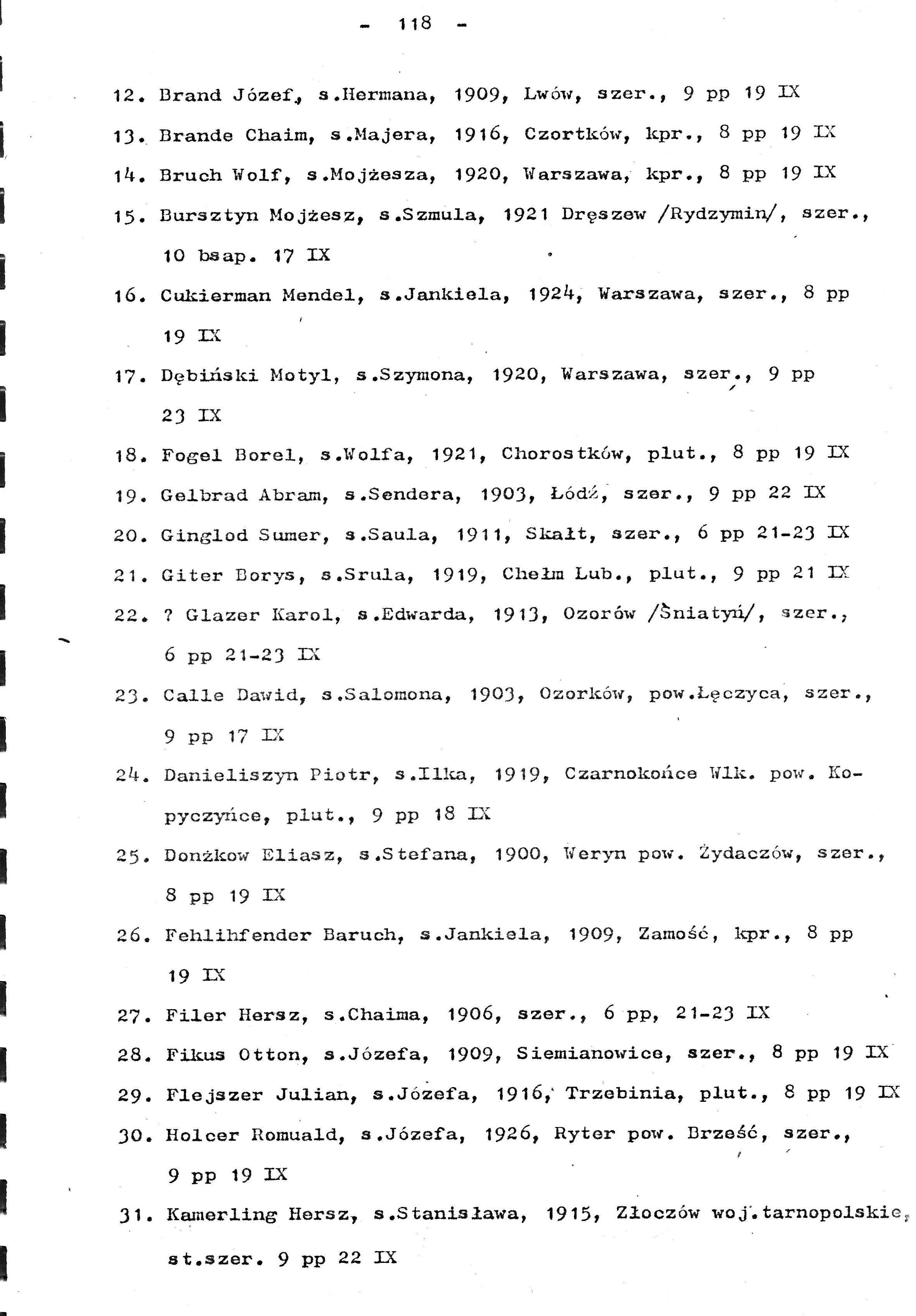 Bursztyn Mojżesz 1921 Poland List of persecuted persons