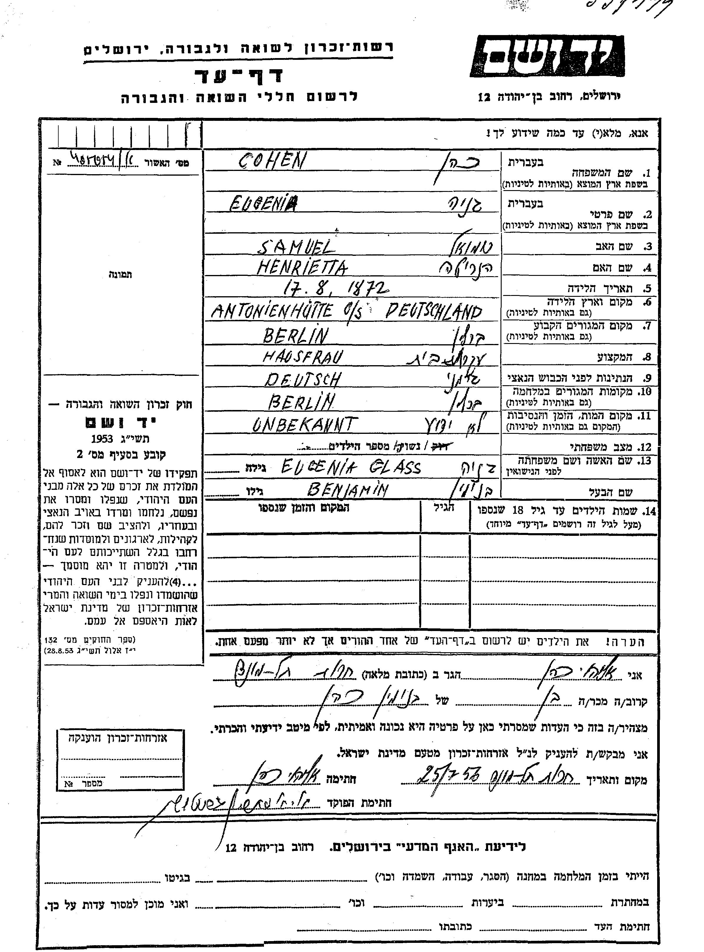 | Cohen | Jenny | Berlin, Germany | Page of Testimony | |