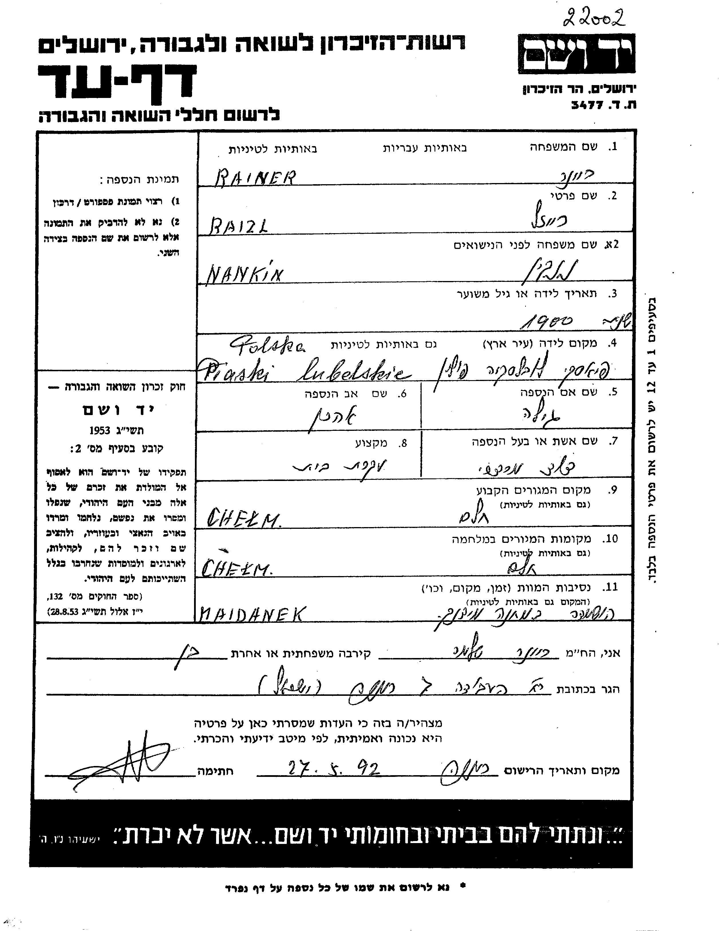 Yad Vashem - Pages of Testimony Names Memorial Collection