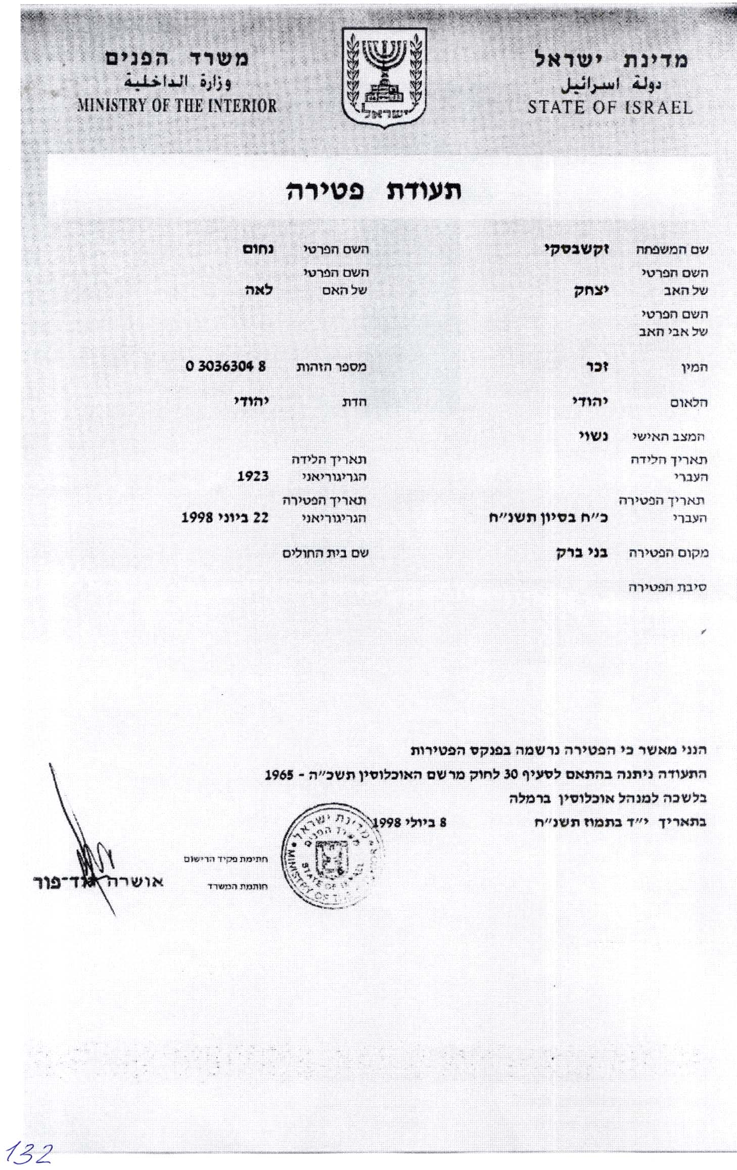 | Zakrzewski | Nuchim | unstated place, | Personal documents | |
