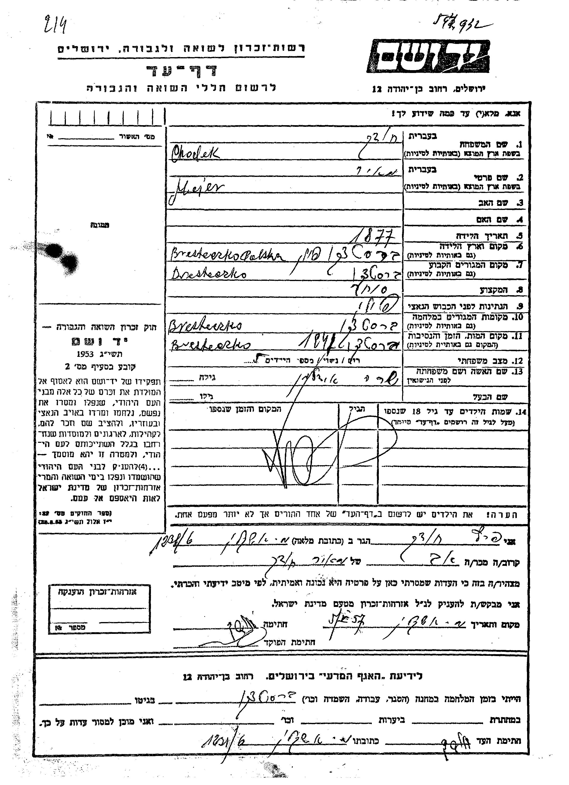 Chodek | Mejer | 1877 | Bresteczko, Poland | Page of Testimony |