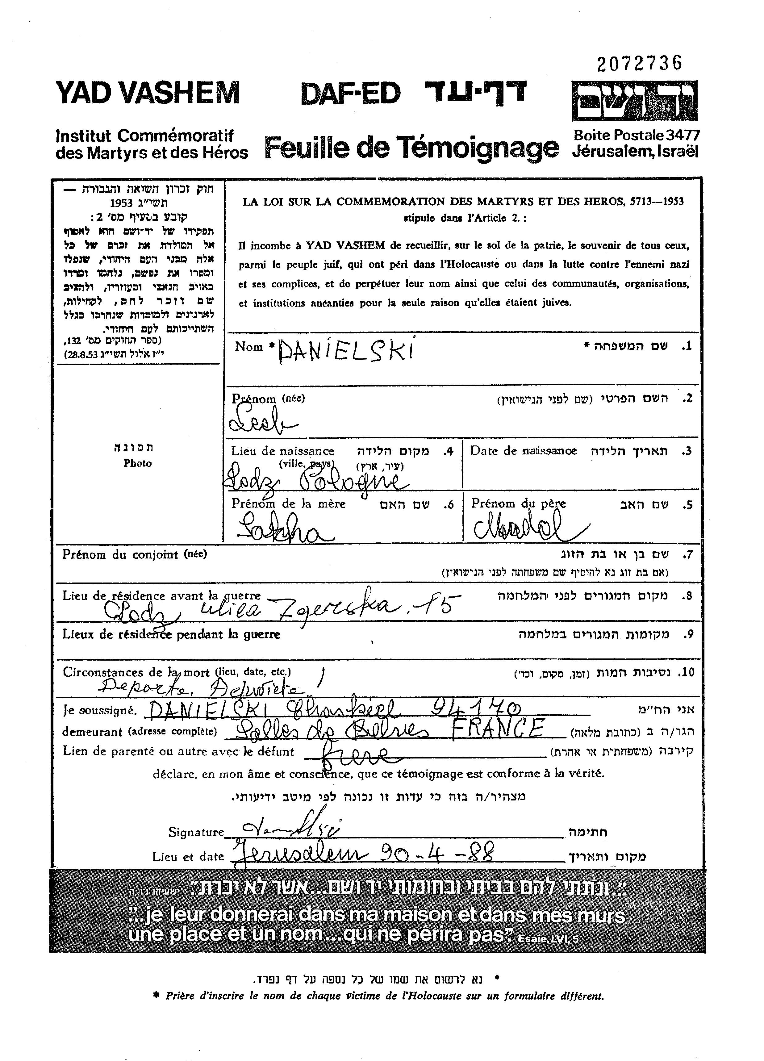 Search by last name of the submitter of the Page of Testimony, including diminutives or nicknames
