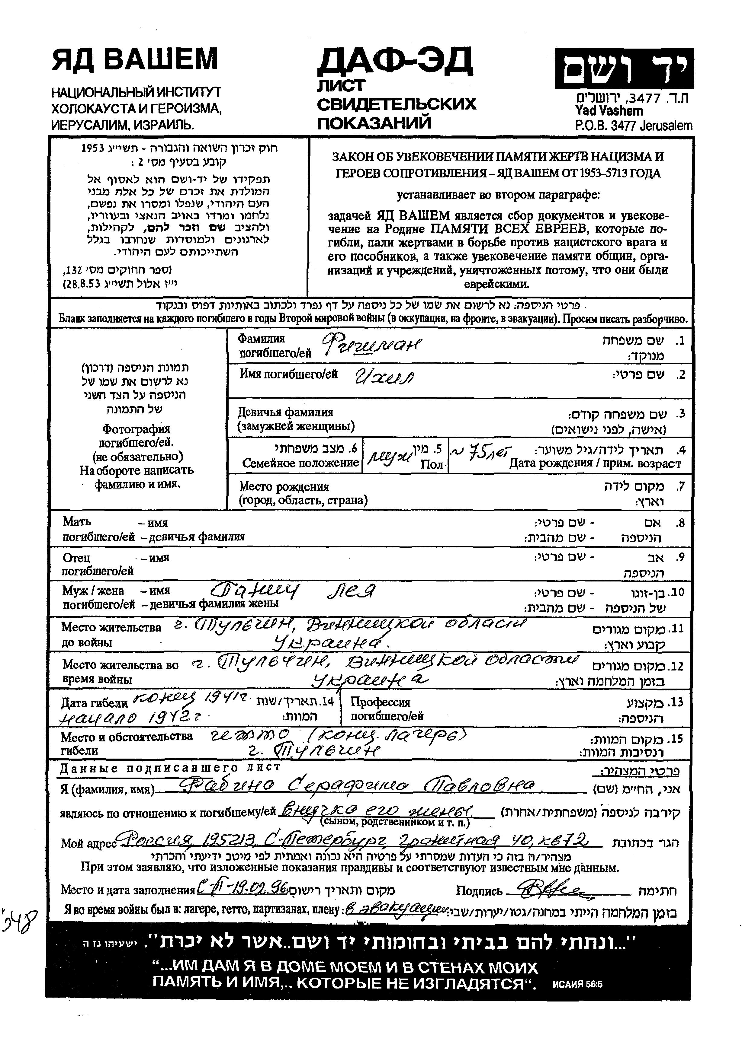 Search by last name of the submitter of the Page of Testimony, including diminutives or nicknames