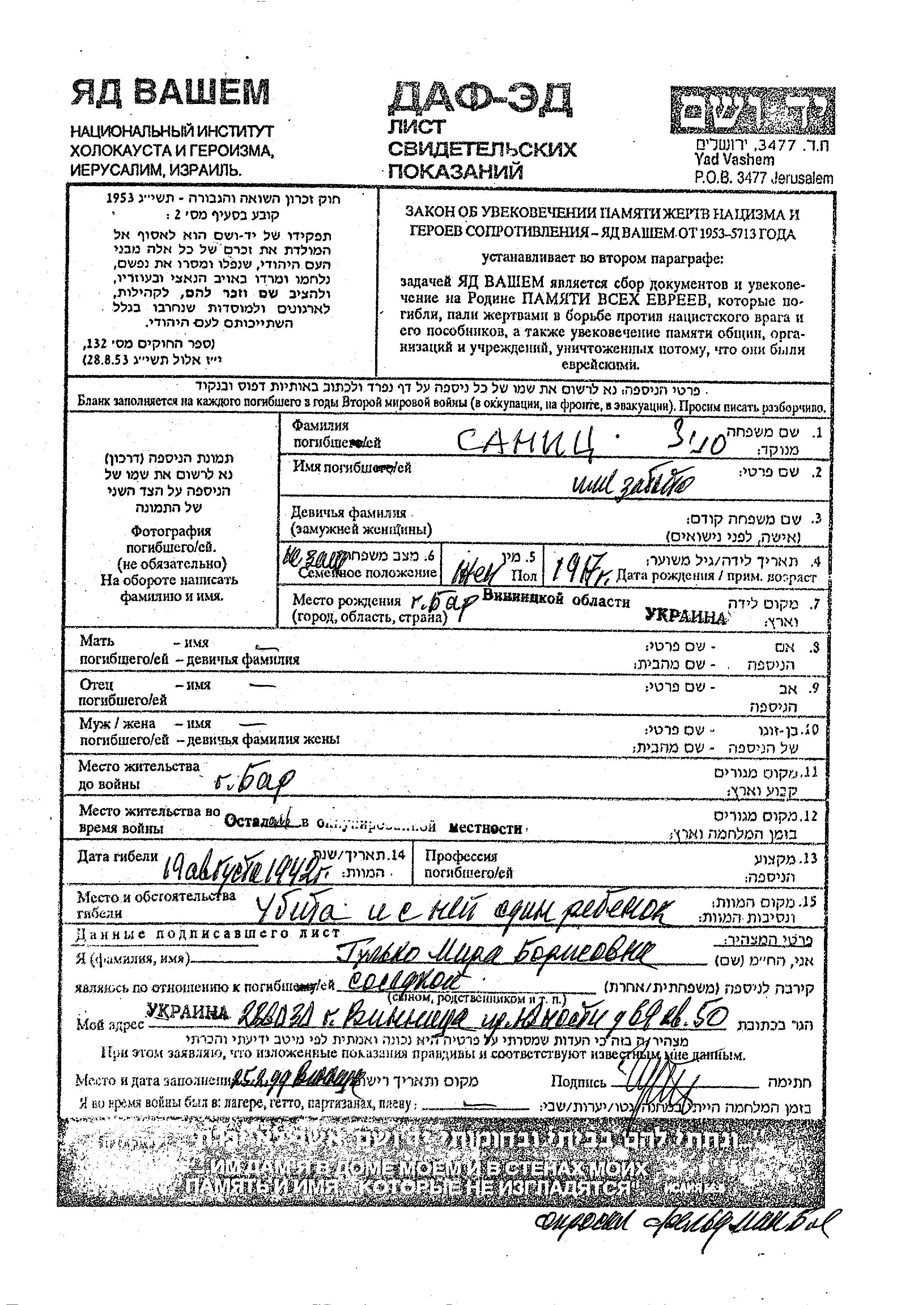 Yad Vashem - Pages of Testimony Names Memorial Collection