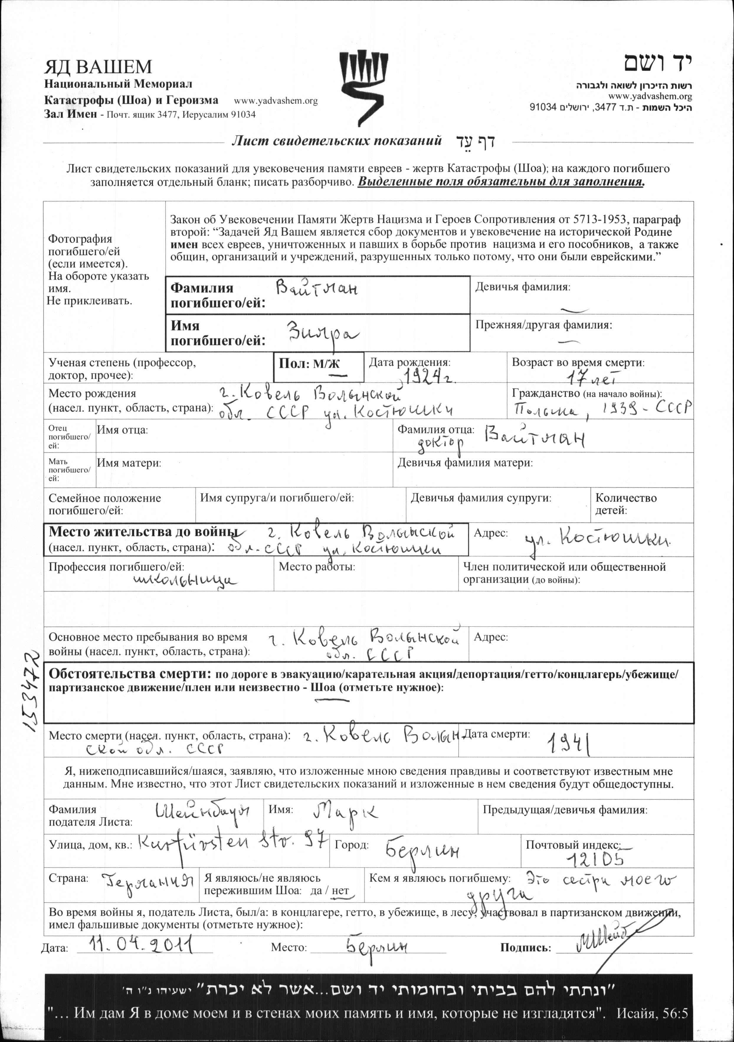 Search by last name of the submitter of the Page of Testimony, including diminutives or nicknames