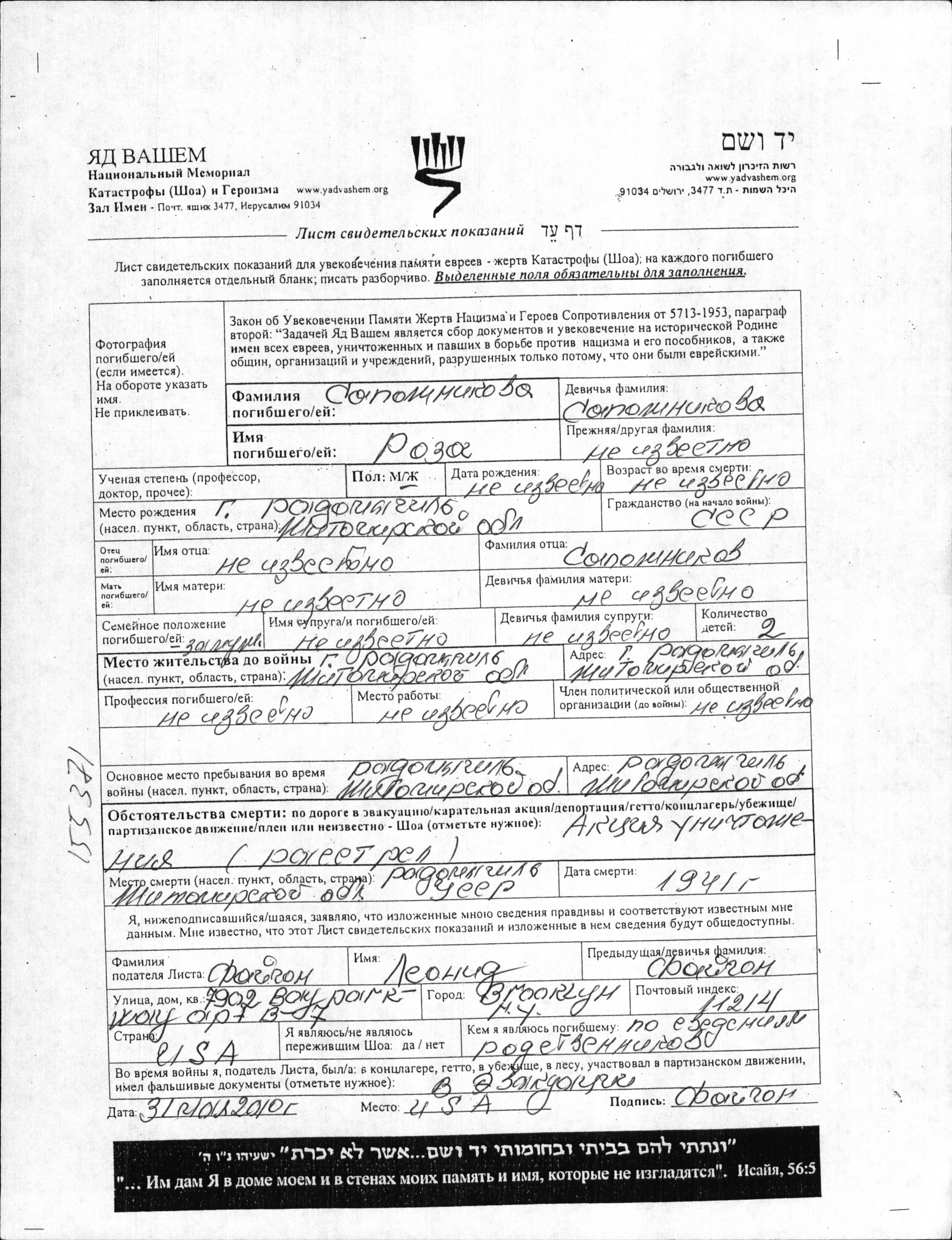Yad Vashem - Pages of Testimony Names Memorial Collection