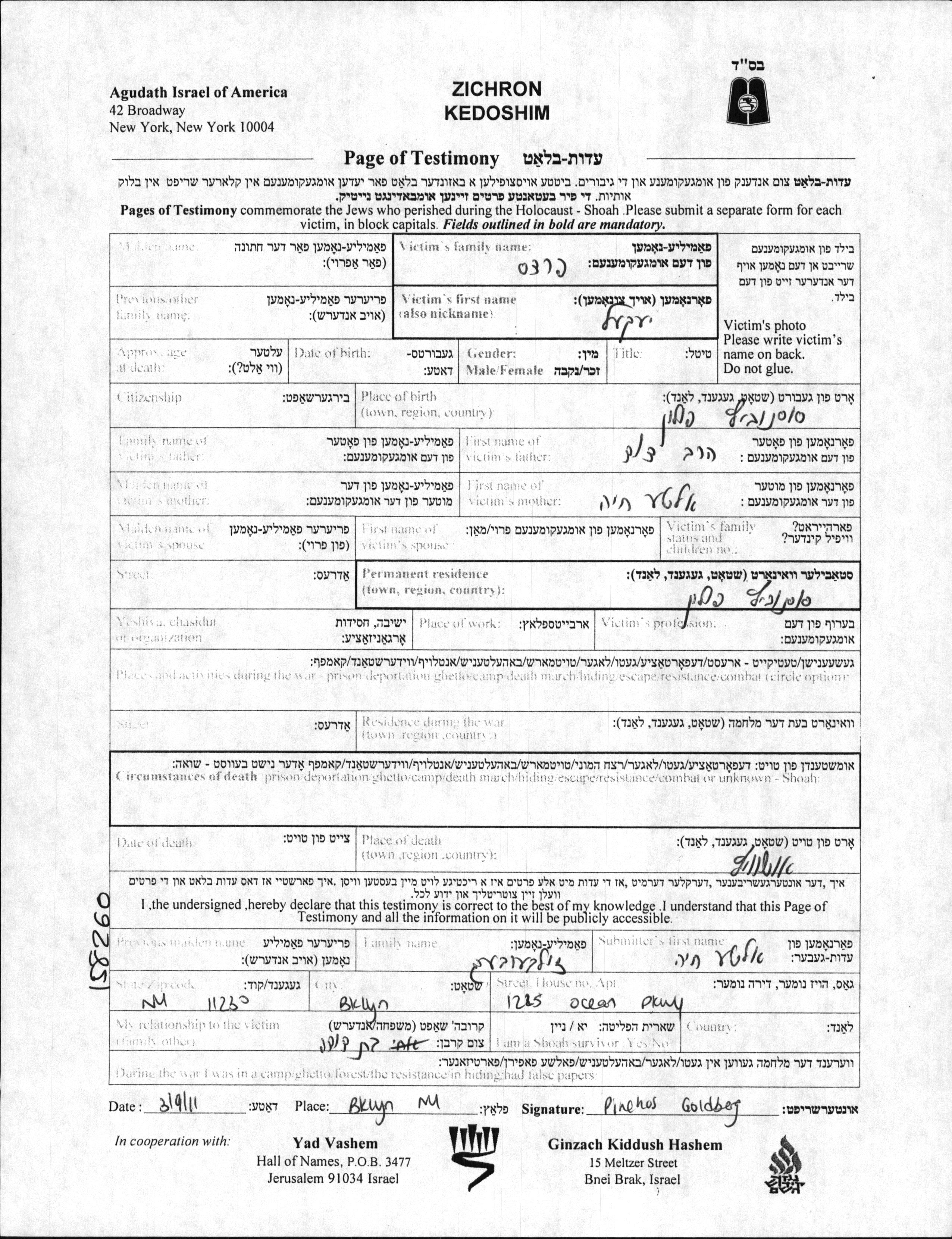 Yekel Pardes was born in Sosnowiec, Poland to David and Alte Chaia. Prior to WWII he lived in Sosnowiec, Poland. During the war he was in Poland. Yekel was murdered in the Shoah. Place of death: Auschwitz, Poland.