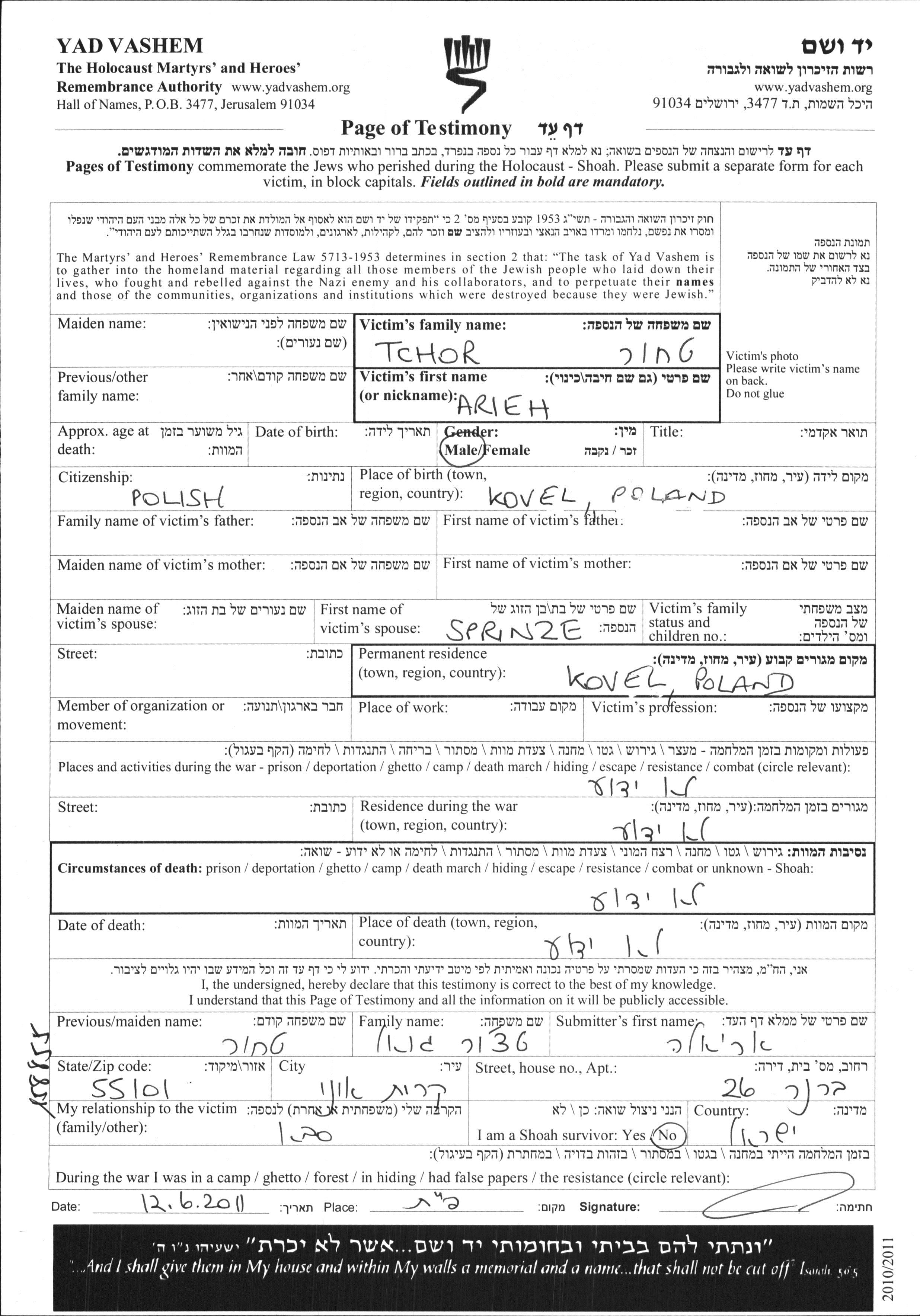 Search by last name of the submitter of the Page of Testimony, including diminutives or nicknames