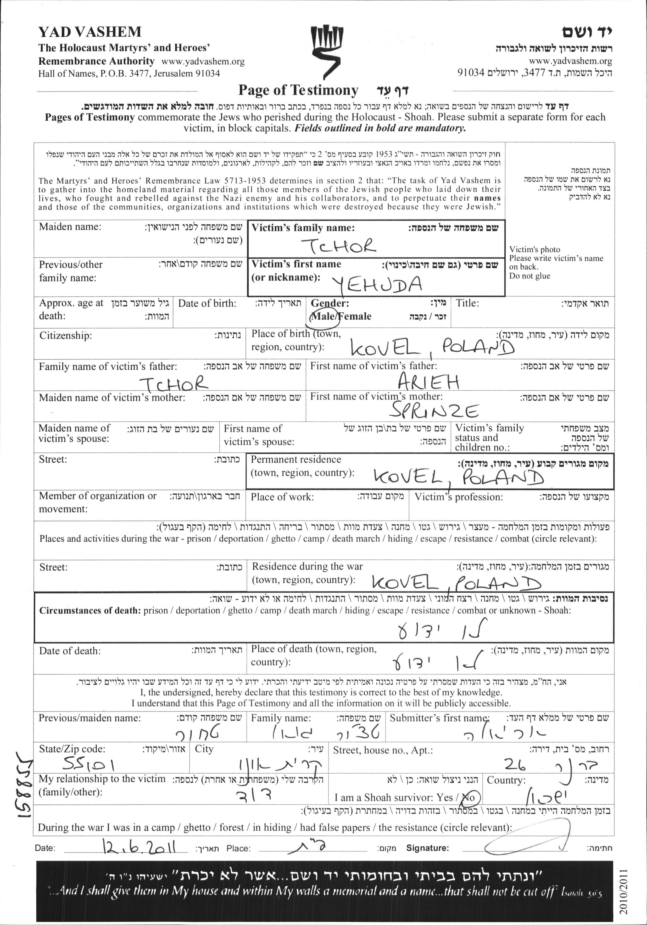 Search by last name of the submitter of the Page of Testimony, including diminutives or nicknames