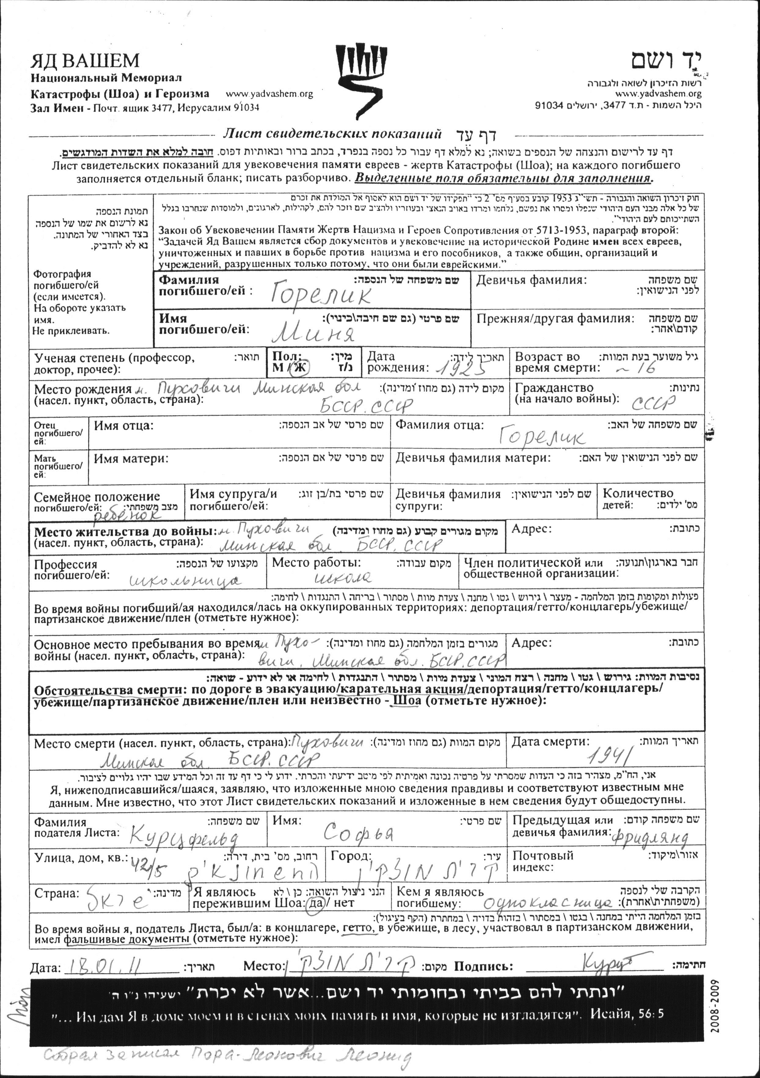 Gorelik Minya 1925 Pukhovichi, Belorussia (USSR) Page of Testimony