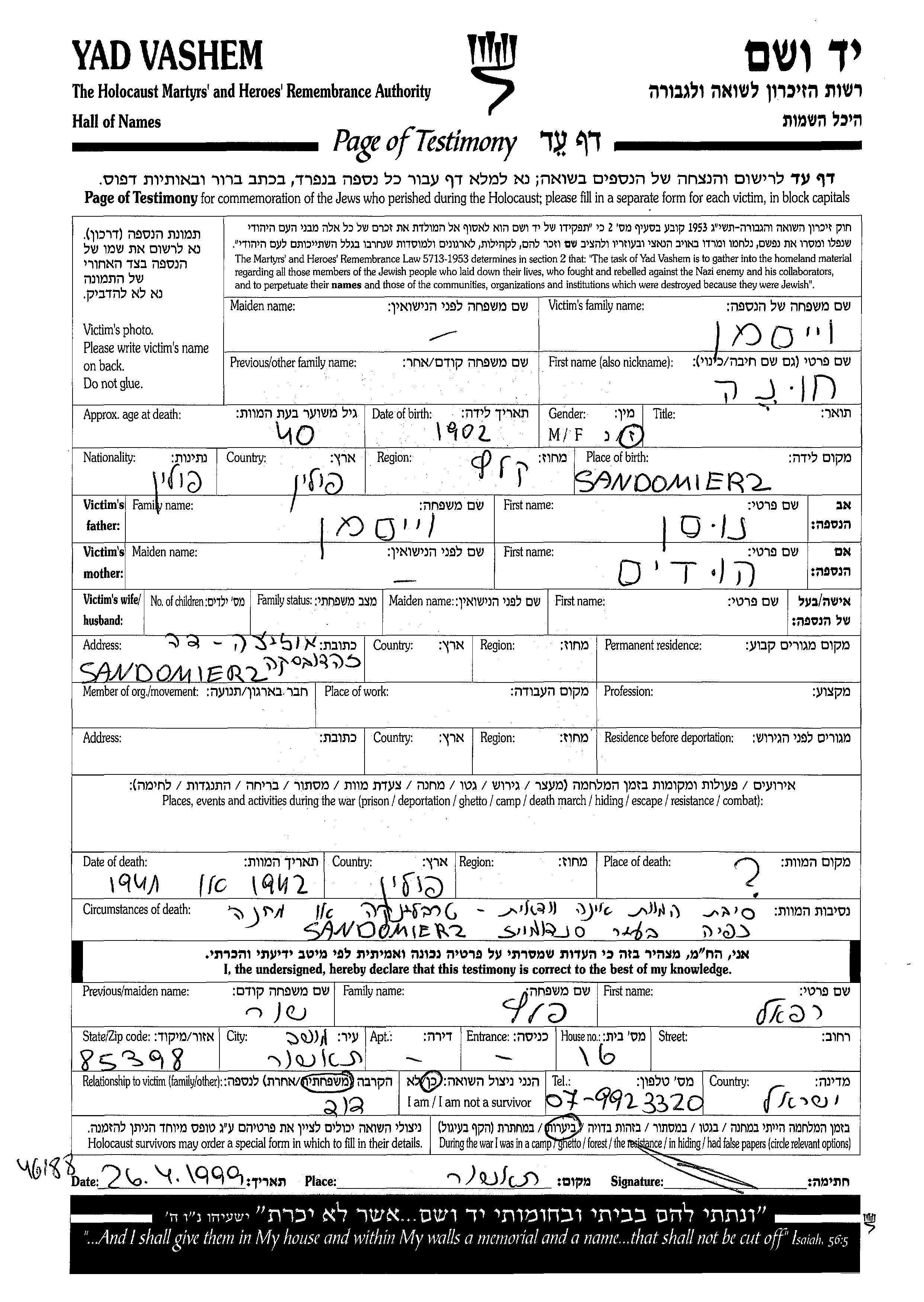 Yad Vashem - Pages of Testimony Names Memorial Collection