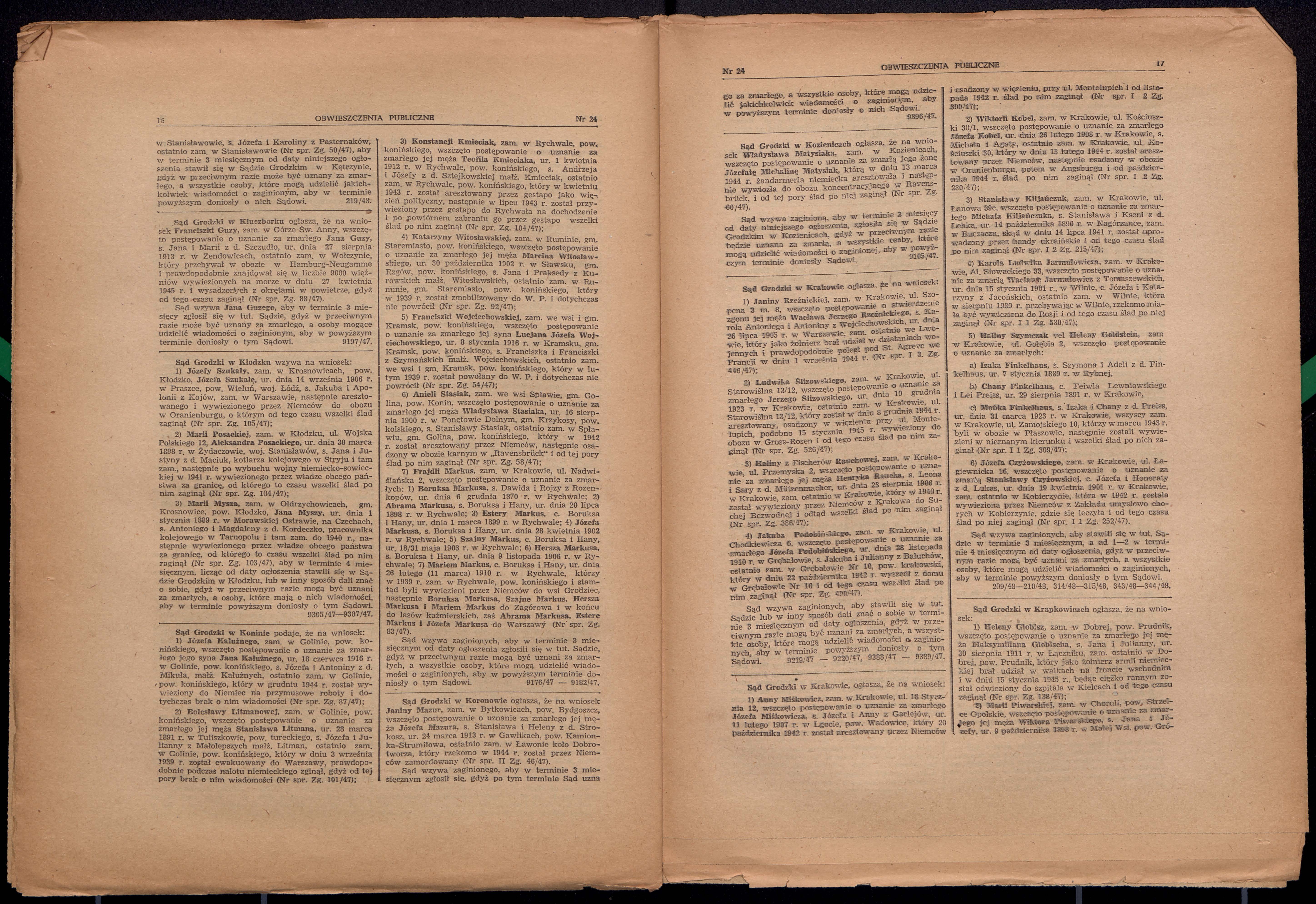 Markus Abram 1898 Rychwal, Poland List of persecuted persons
