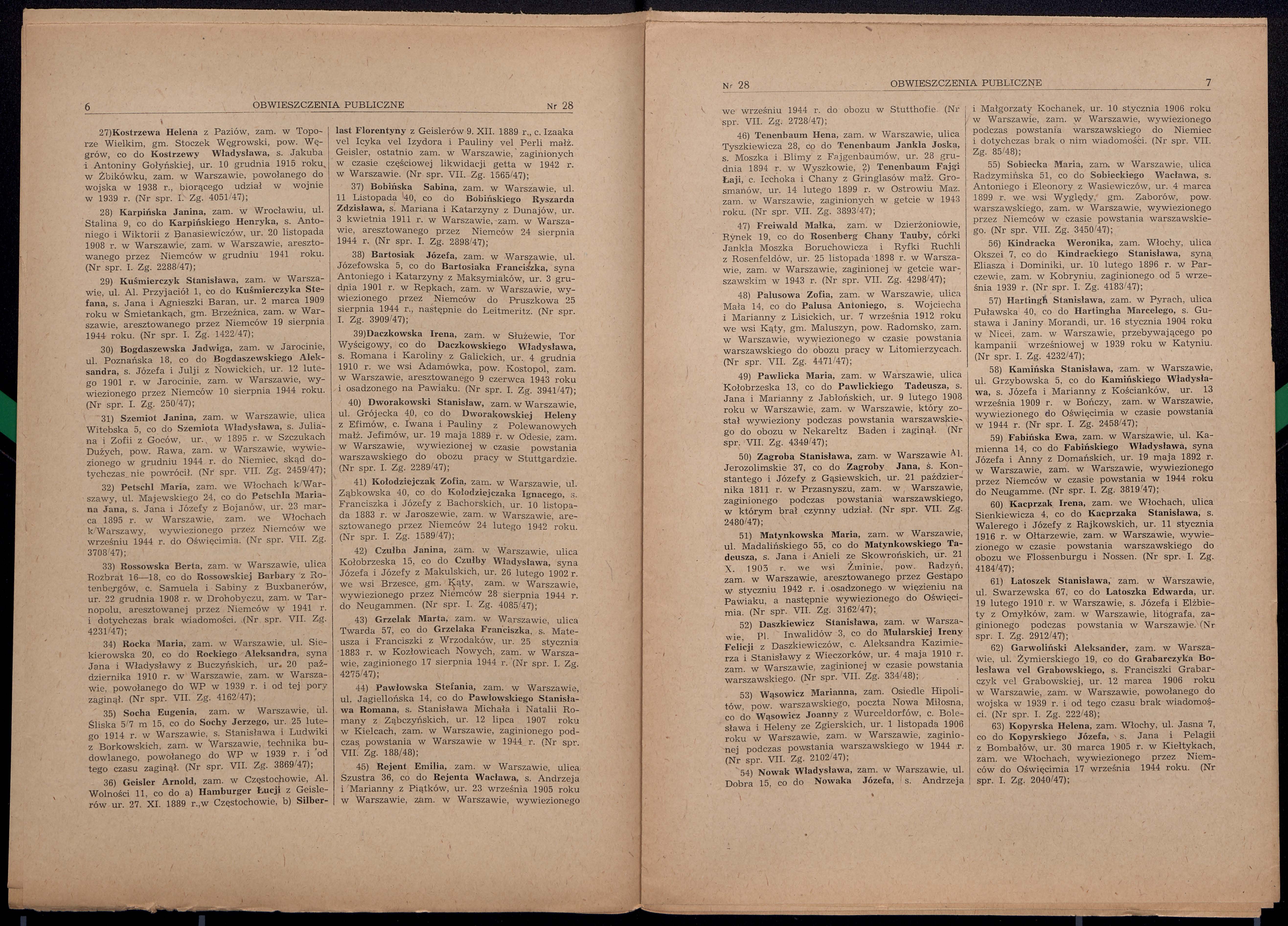 Jankel Josek Tenenbaum was born in Wyszkow, Poland, 1894 to Moszek and Blima nee Fajgenbaum. Prior to WWII he lived in Warszawa, Poland. During the war he was in Warszawa, Poland. Jankel Josek was murdered in the Shoah.