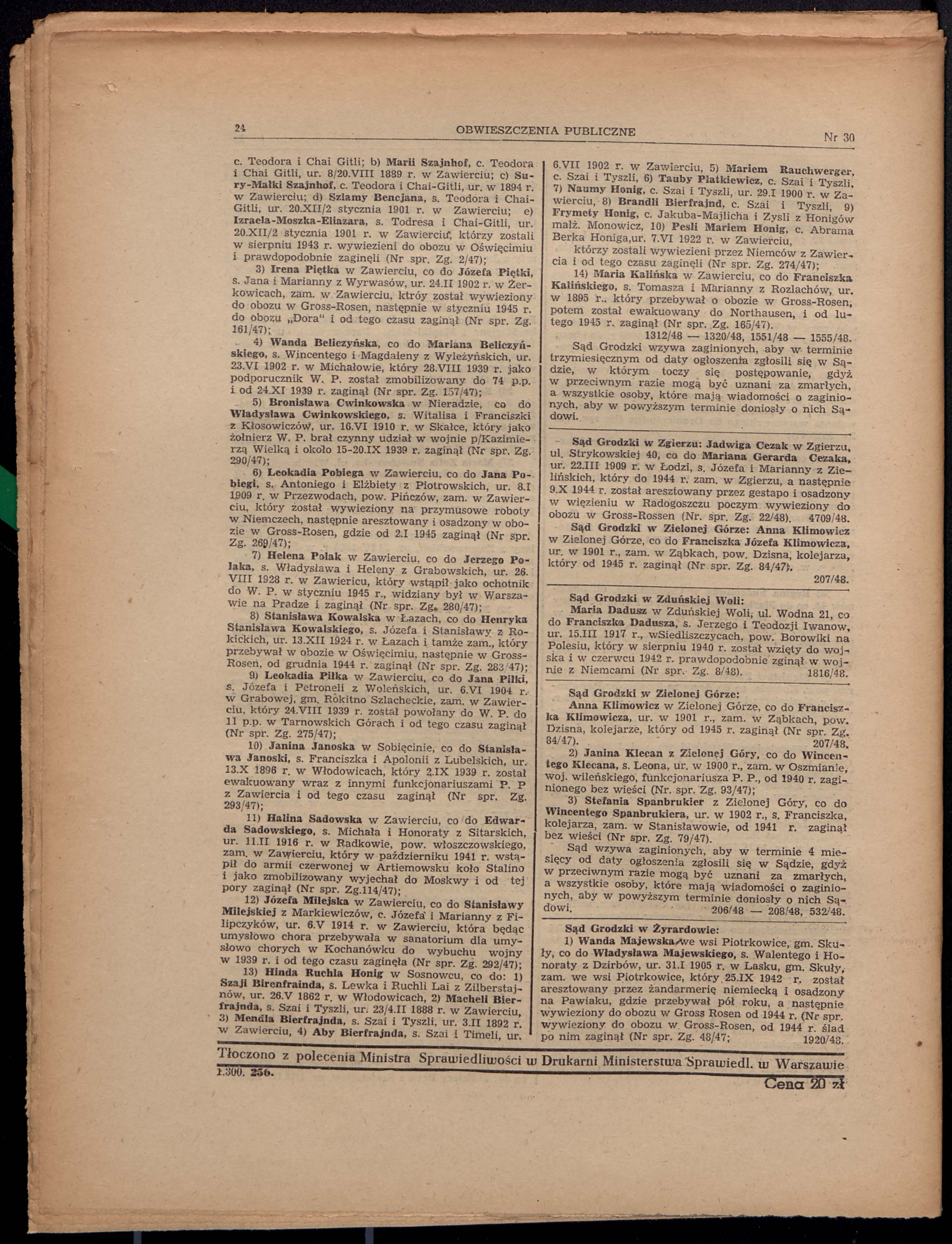 Birenfraind Szaja 1862 Wlodowice, Poland List of persecuted persons
