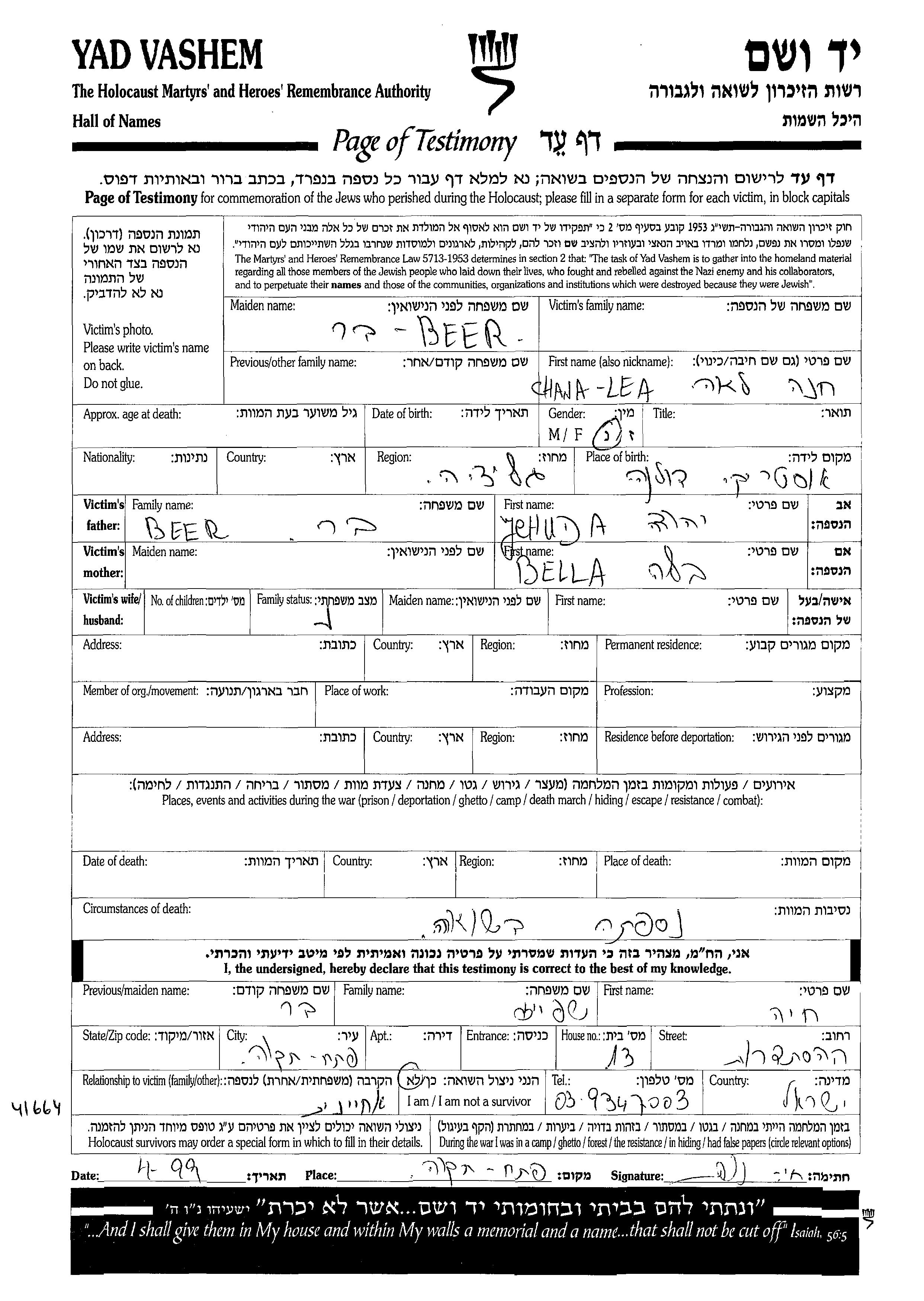 Yad Vashem - Pages of Testimony Names Memorial Collection