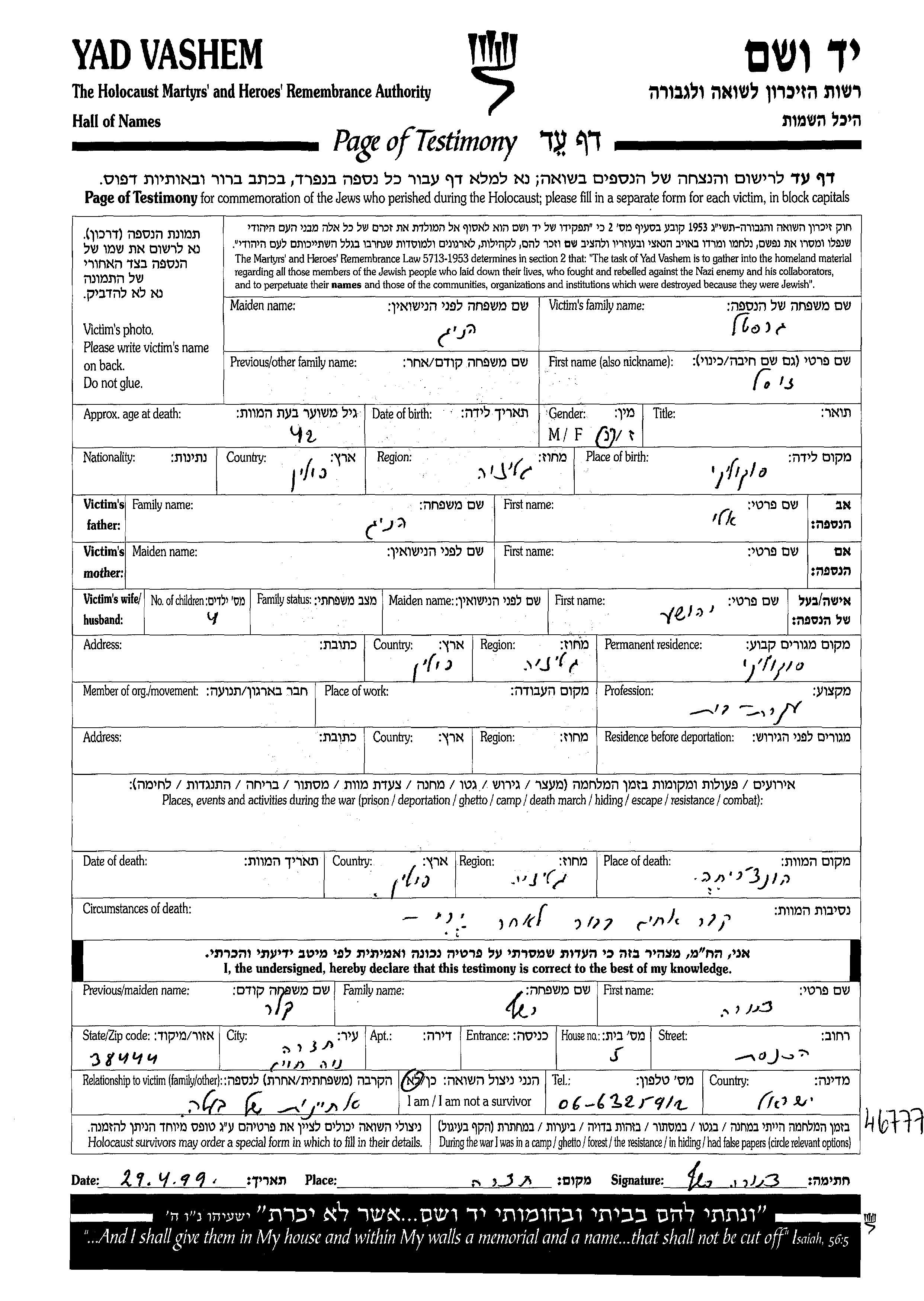 Zysl Gerstel nee Henig was born in Sokoliki, Poland to Eli. She was a housewife. Prior to WWII she lived in Sokoliki, Poland. Zysl was murdered in the Shoah. Place of death: Honczarycha, Poland.