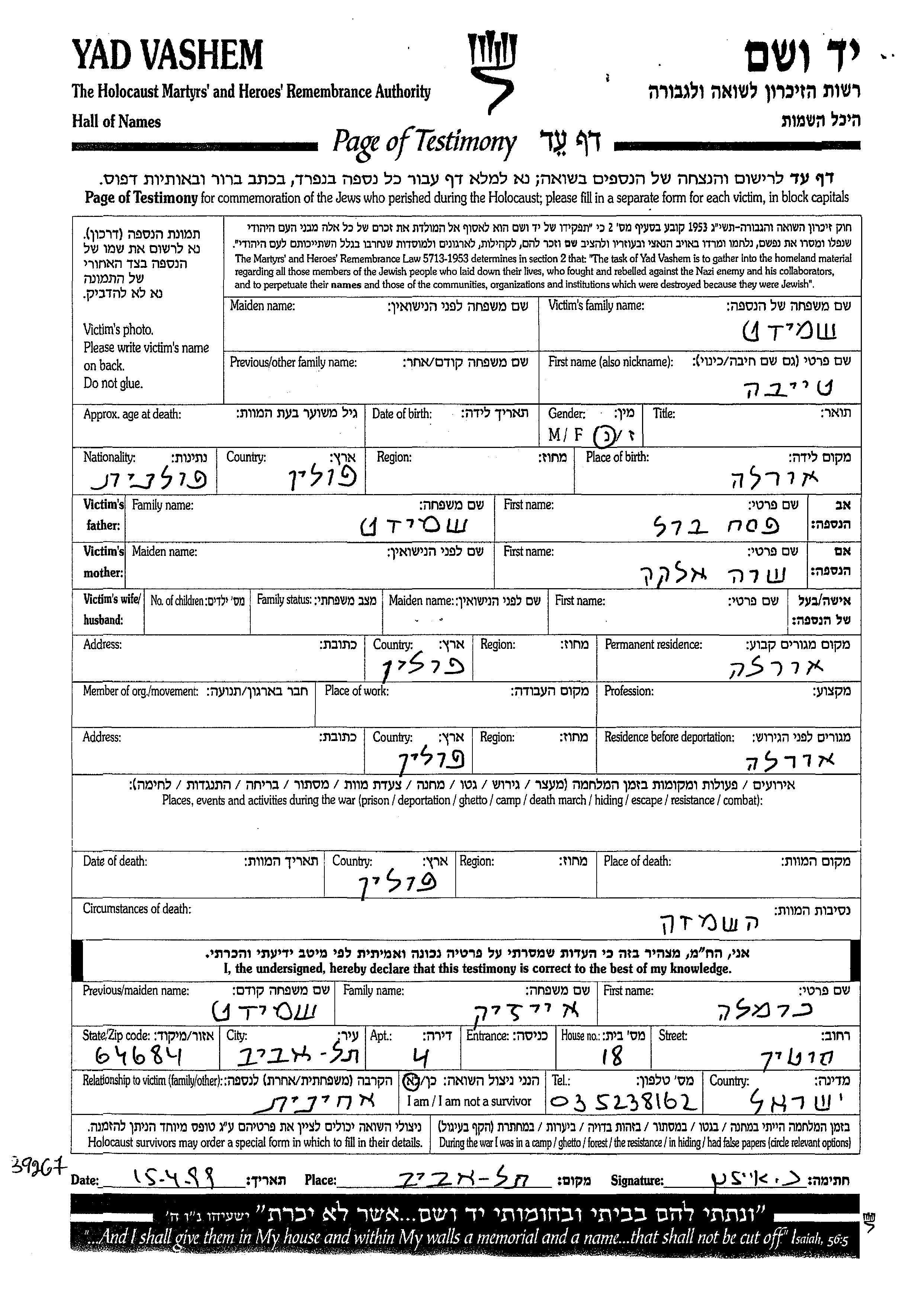 Taiba Shmidt was born in Orla, Poland to Pesakh Berl and Sara Elka. Prior to WWII she lived in Orla, Poland. During the war she was in Orla, Poland. Taiba was murdered in the Shoah. Place of death: Poland.