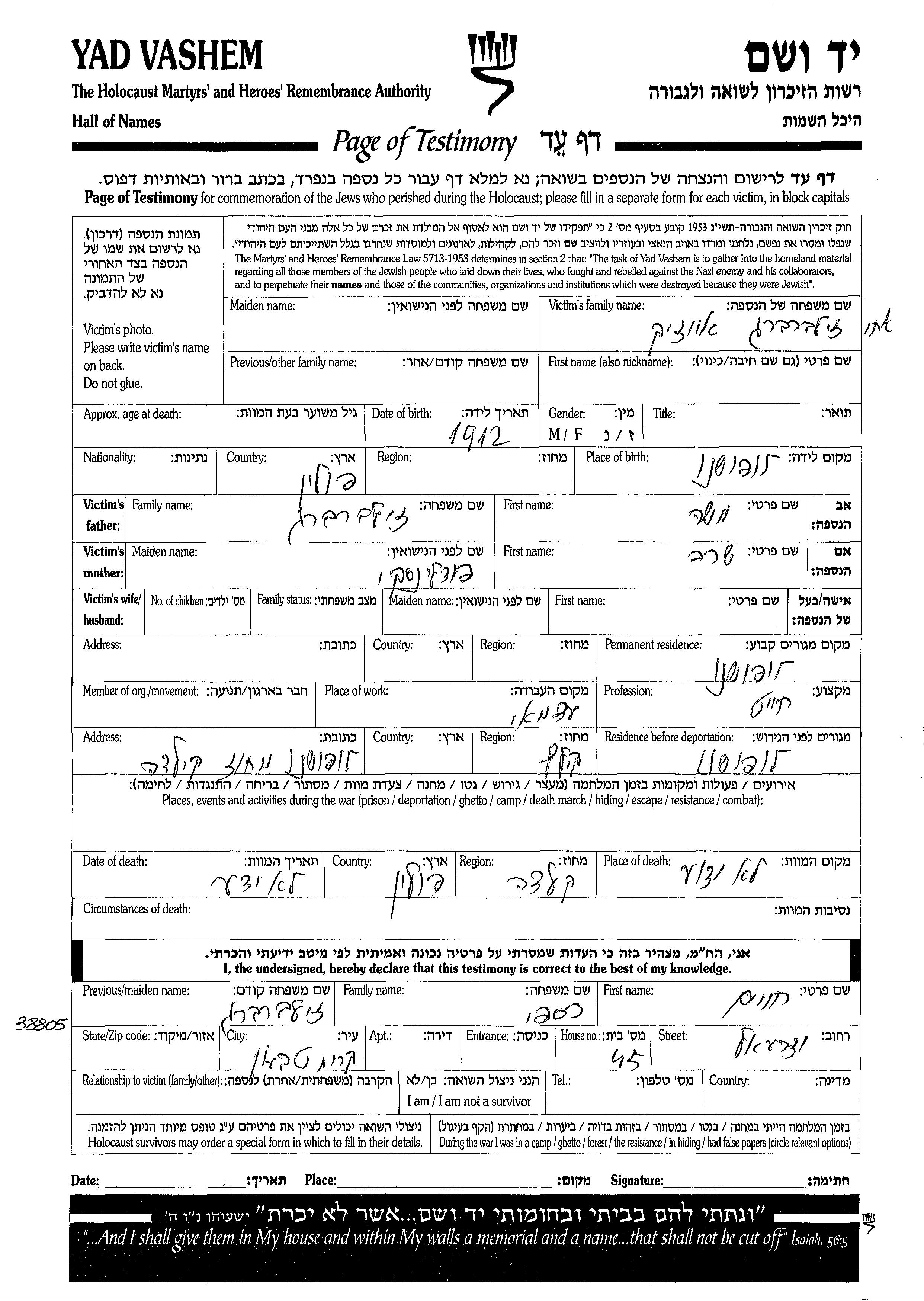 Aizik Zilberberg was born in Lopuszno, Poland, 1912 to Moshe and Sara. He was a tailor. Prior to WWII he lived in Lopuszno, Poland. During the war he was in Lopuszno, Poland. Aizik was murdered in the Shoah. Place of death: Kielce, Poland.